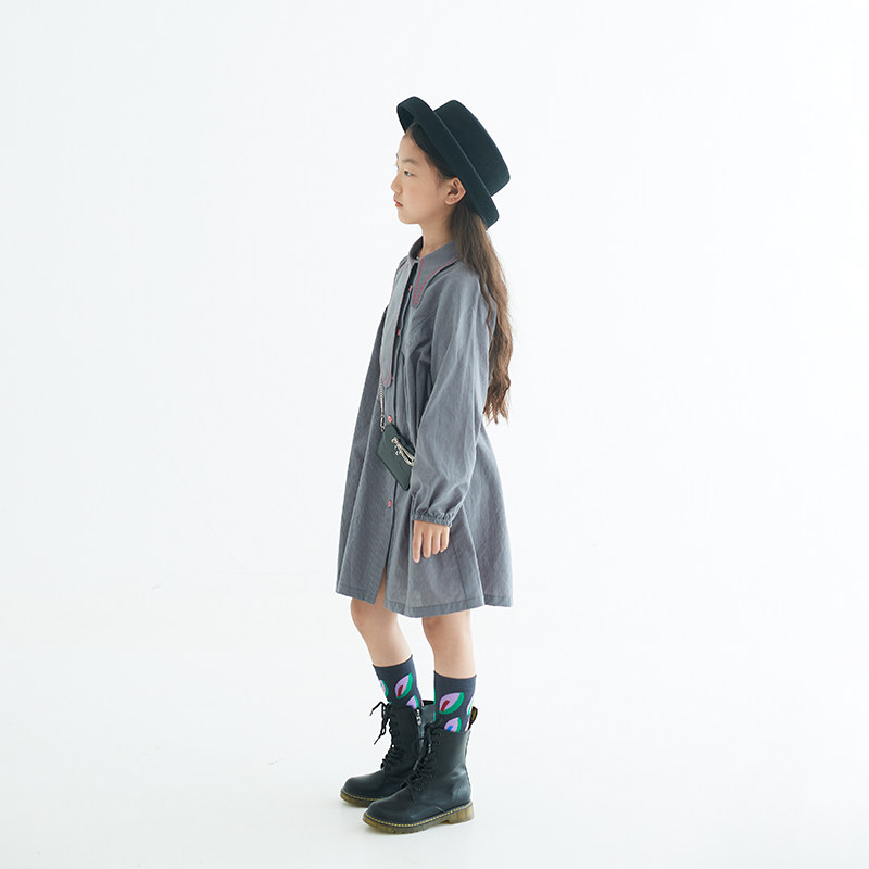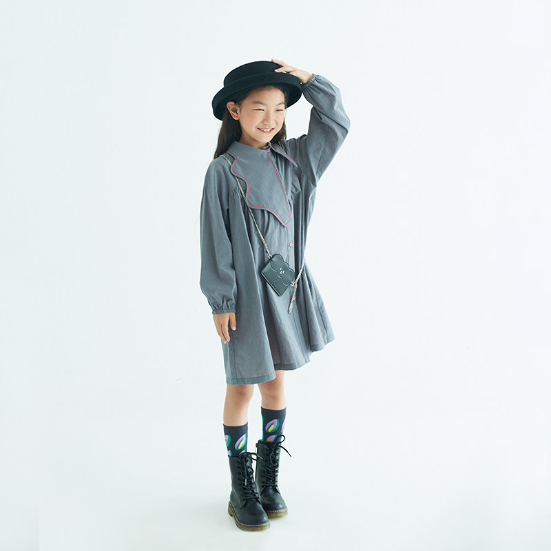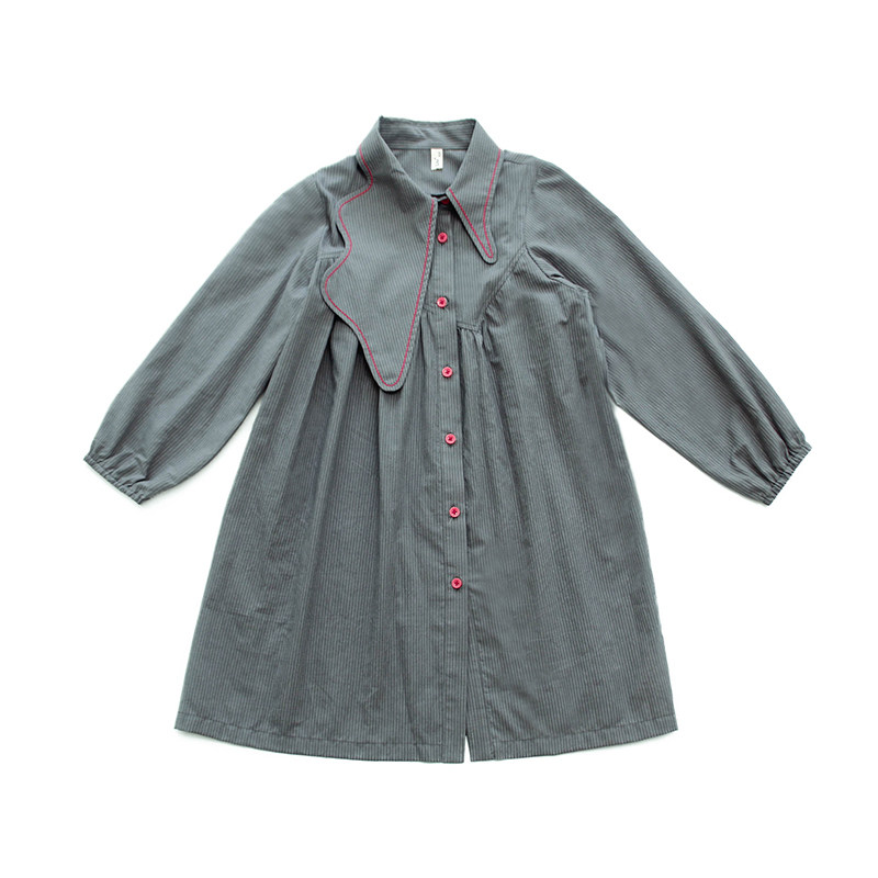 Pawpaw Liu original design girl autumn dress foreign dress 2021 new pint grey striped shirt skirt long sleeve cotton