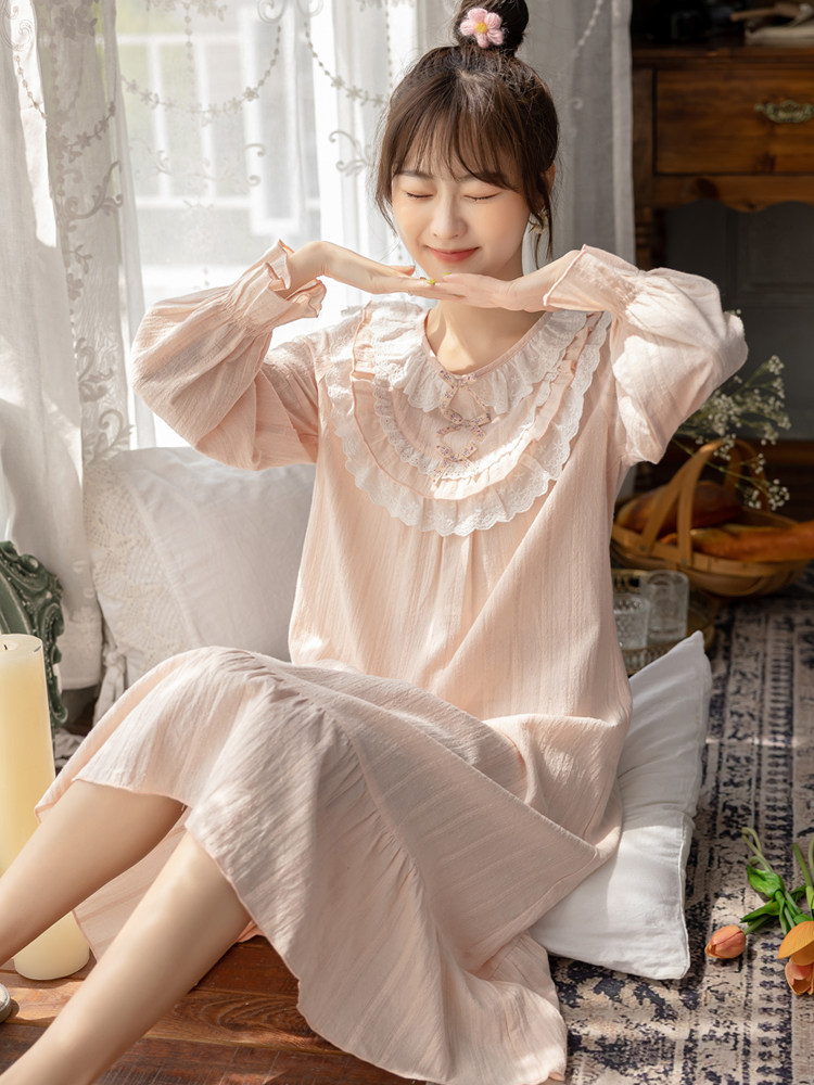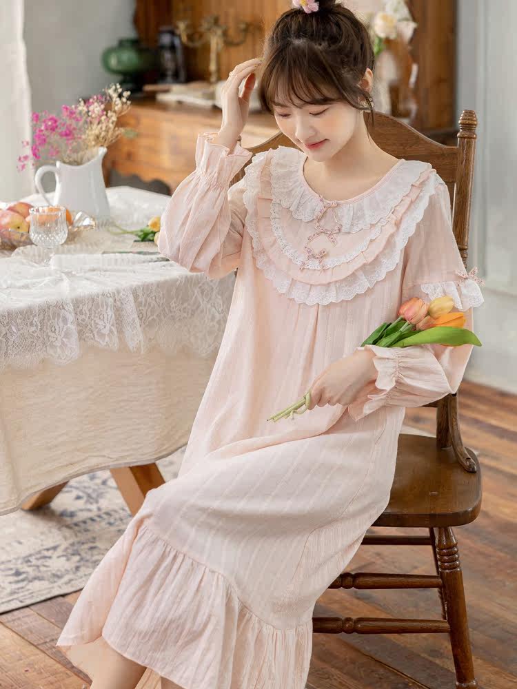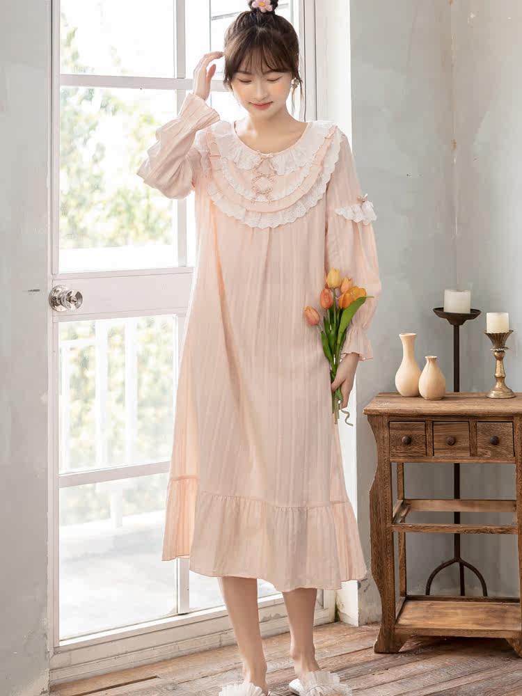 Sleeping Dress Lady Spring Autumn Pure Cotton Long Sleeve Cute Teenage Girl Princess Wind 2022 New Sleepwear Over Knee Long Skirt Spring Summer Thin