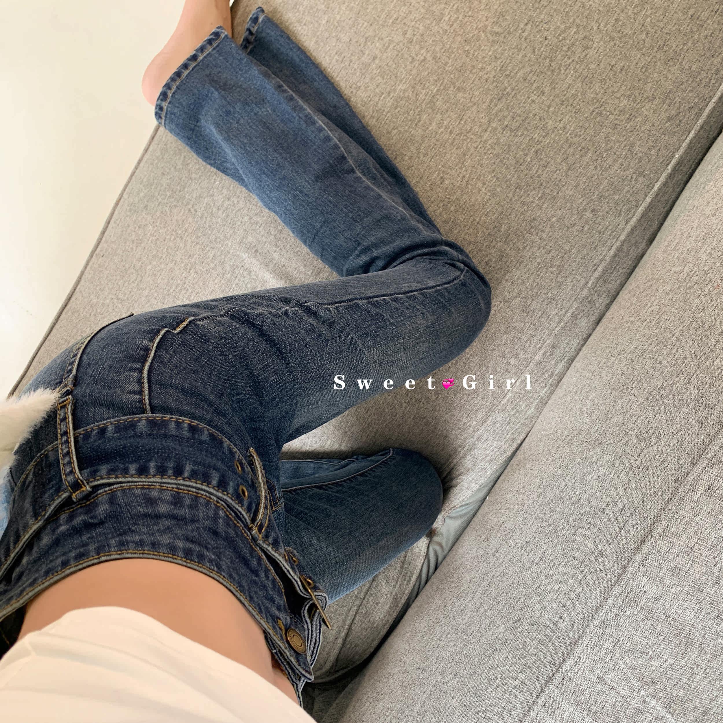 Stovepipe expert wide belt retro jeans women spring high waist slim micro flared pants casual show thin wide leg mopping pants