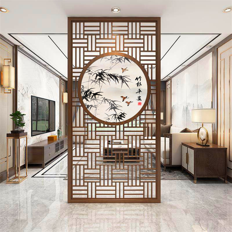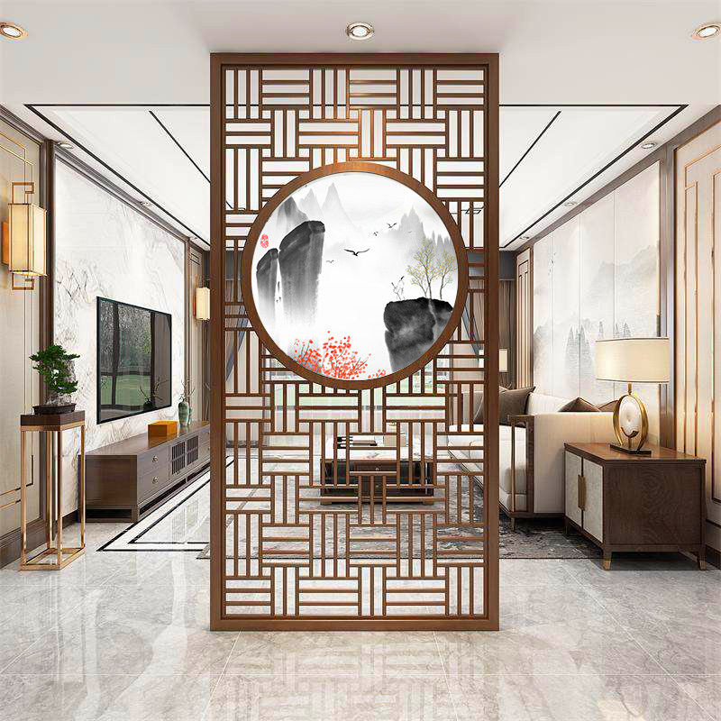 Screen Living Room Cubicle Wall New Chinese Wood Custom entrance to the family Xuanguan grille Book room log decoration Zen solid wood