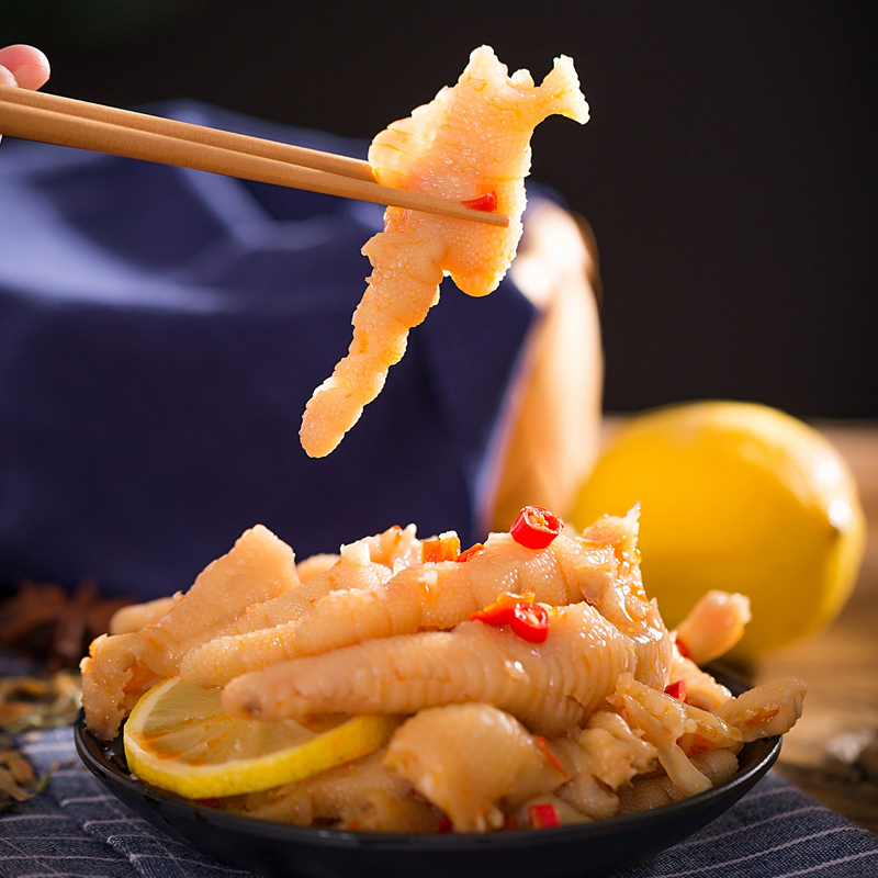 Boneless chicken feet net red ready-to-eat open bag hot and sour lemon snack snacks canned pickled pepper chicken feet spicy garlic flavor