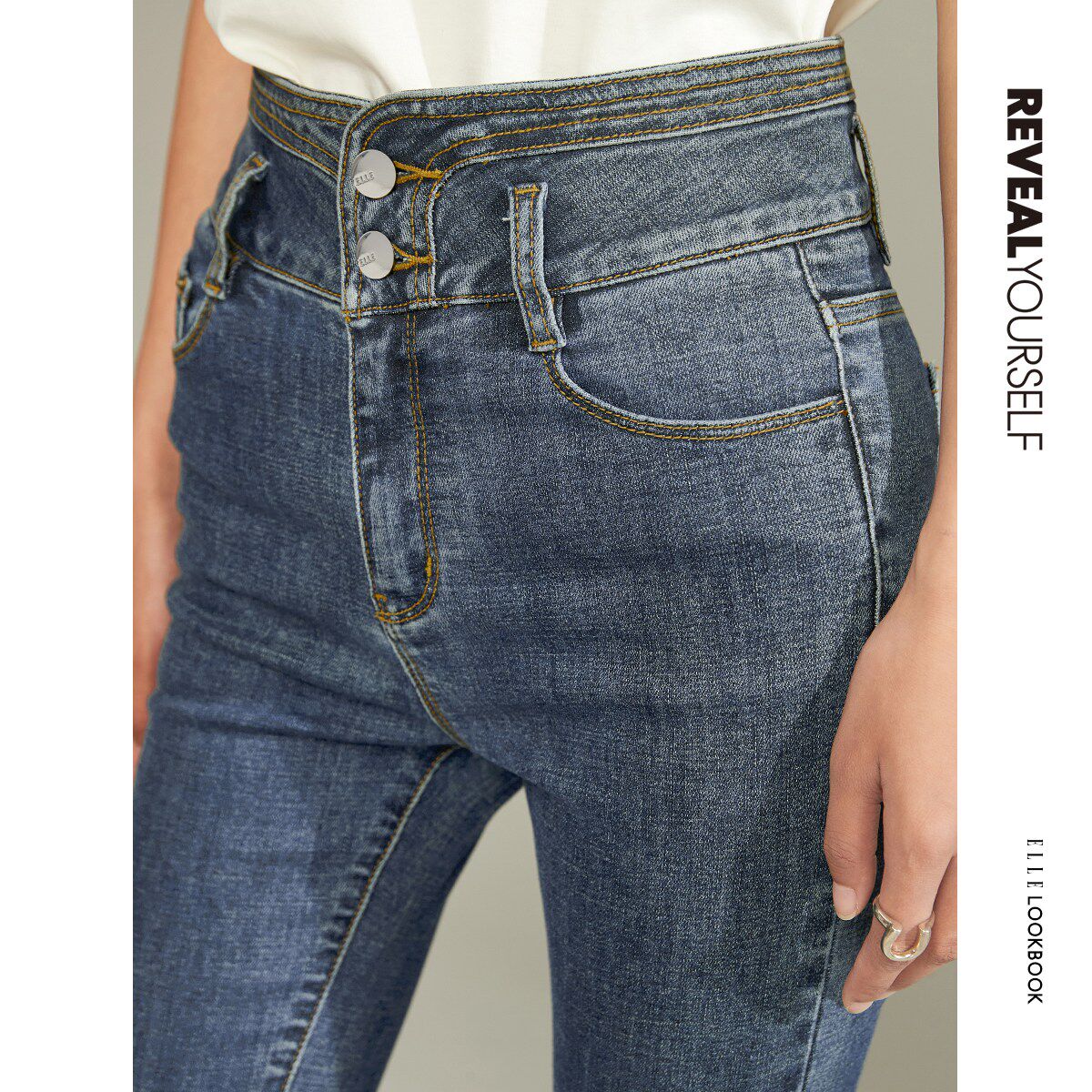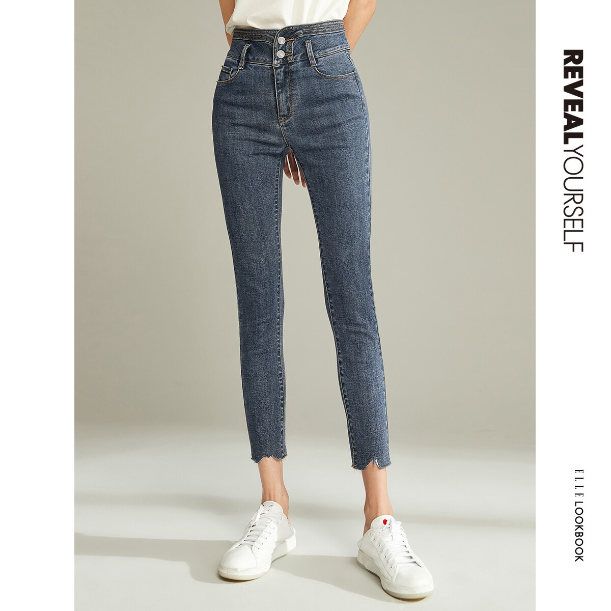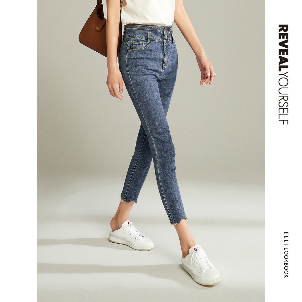 ELLE retro high waist jeans women 2021 spring autumn new design senses slim fit slim fit pants