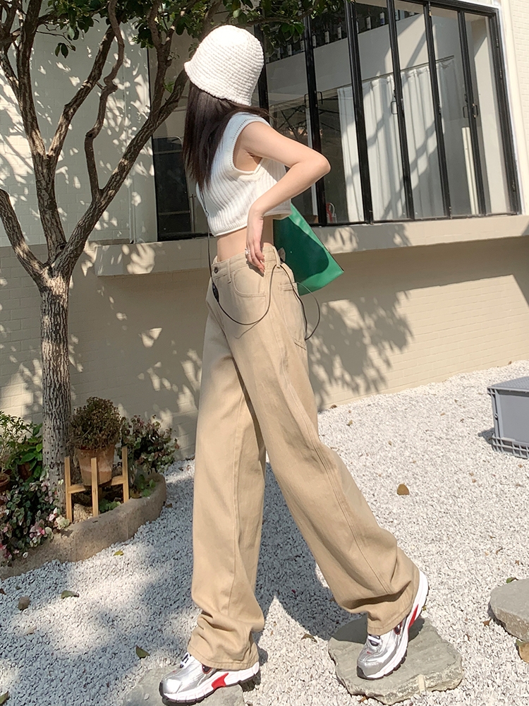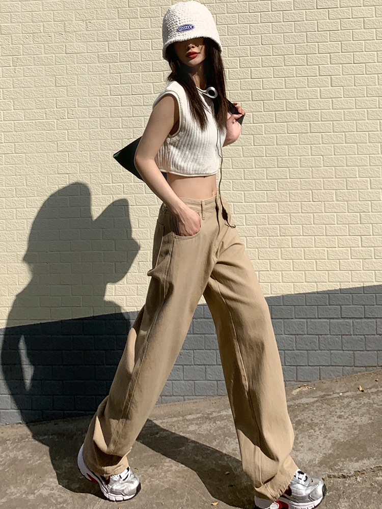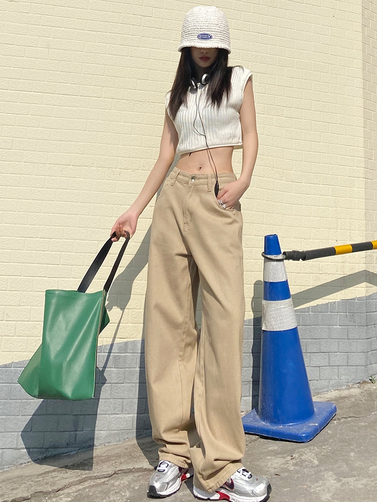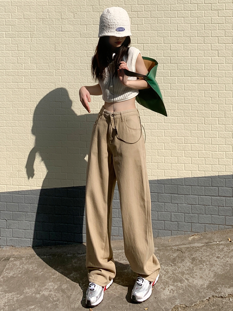 RJVO new thin autumn khaki pants women's 2022 straight wide-legged slim high street jeans trousers