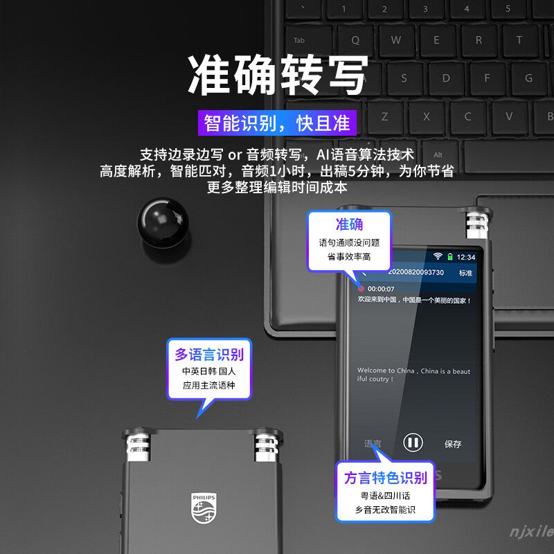 Philips ai smart recording pen VTR8600 professional high-definition noise reduction touch screen multi-language to Chinese character conference