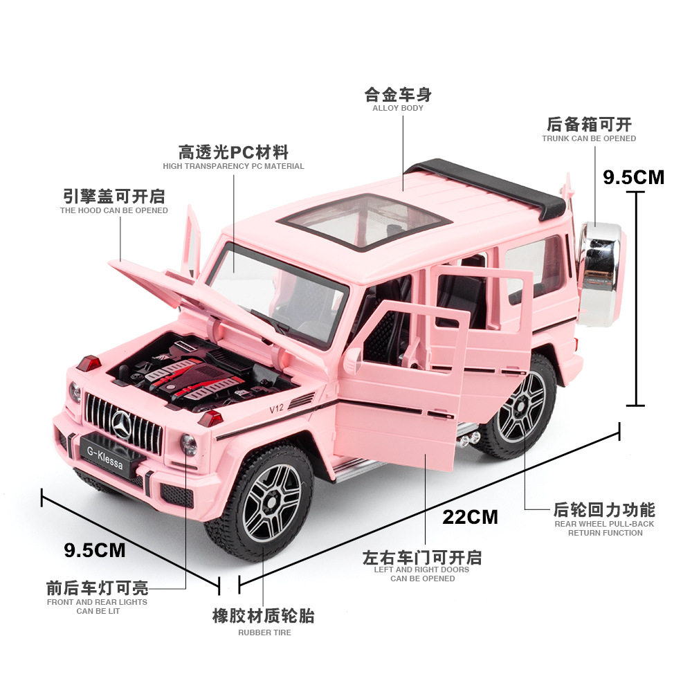 1:24 Pink Benz Great G Car Mold Alloy Off-road Car Jeep G63 Car Model Metal Toy Car Girl