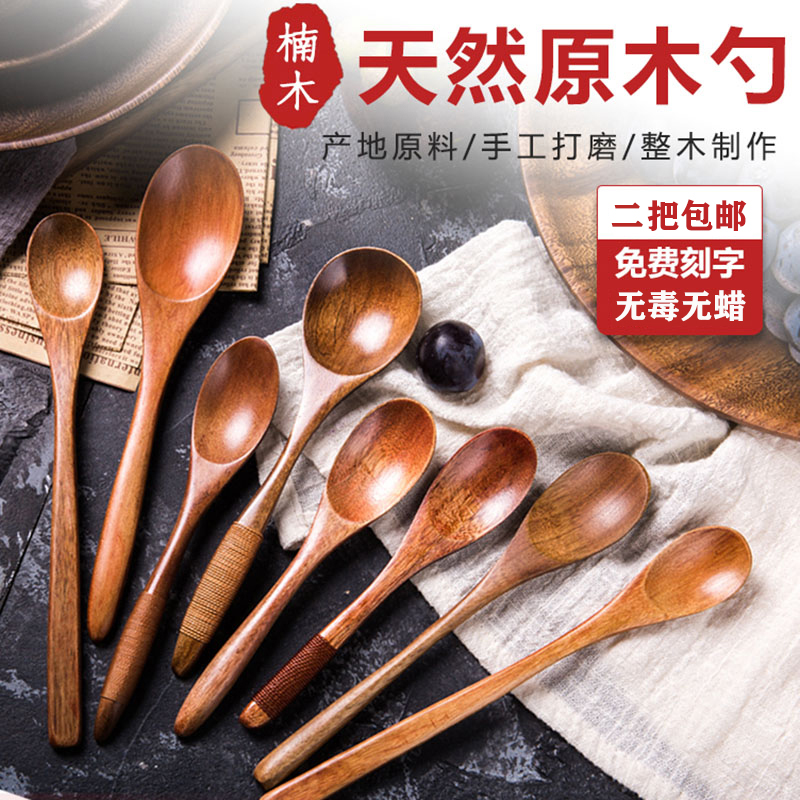 Solid wood spoon spoon wooden dessert coffee handmade honey lettering spoon tableware size wooden spoon Japanese long handle