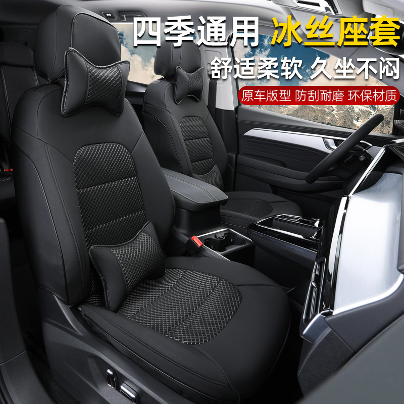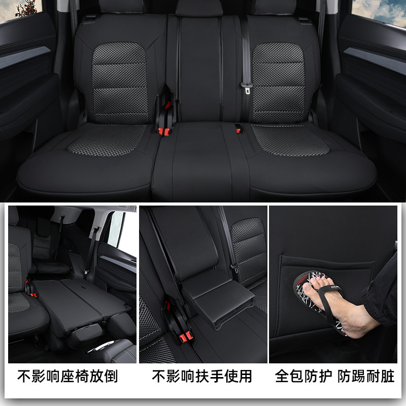 Lanjing seat coverBlack ice silk model with lumbar headrestLanjing seat coverBlack leather pattern with waist support and headrestLanjing seat coverBlack ice silk version without waist support headrestLanjing seat coverBlack leather pattern without waist support six seater headrest