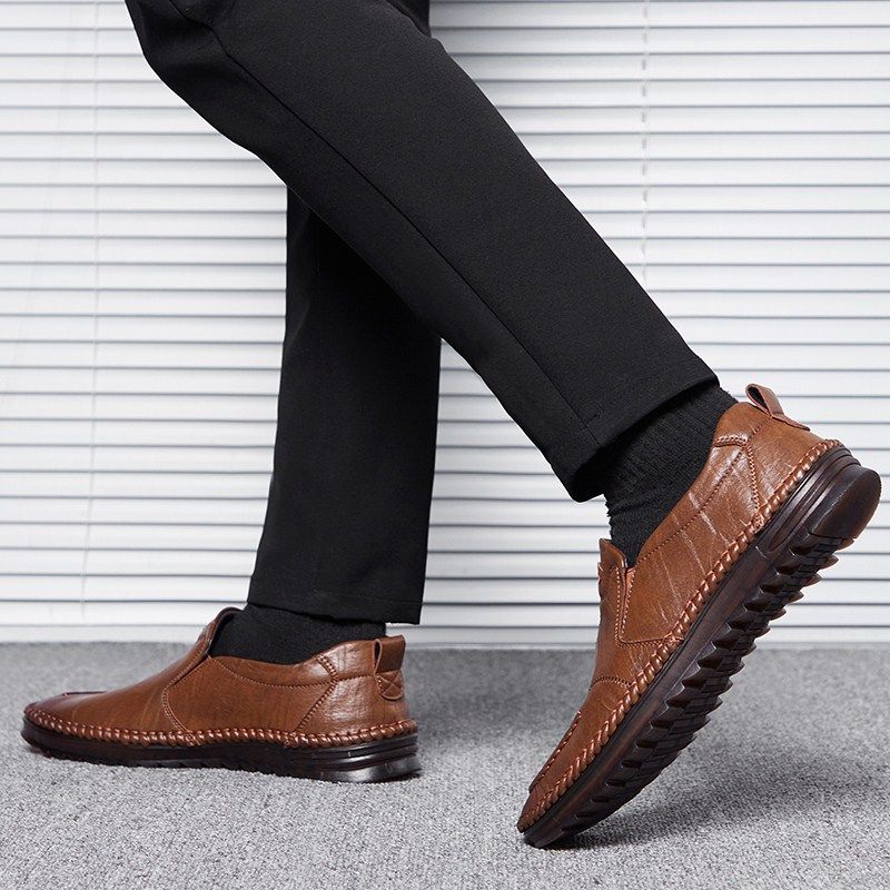 Tide Cards 2021 New Fall Casual Shoes Men Leather Shoes Leather Retro Business 100 Hitch Bull Gluten Bottom Sloth Shoes