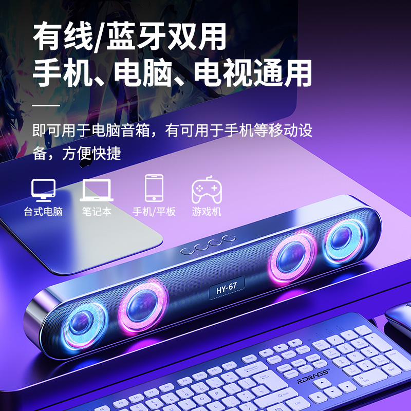 Computer Acoustics Desktop Home Overweight Low Sound Cannon Speaker Small Desktop Notebook Portable Wireless Active Horn Multimedia Bluetooth High Sound Quality Strip 3D Surround PS4 Game Impact