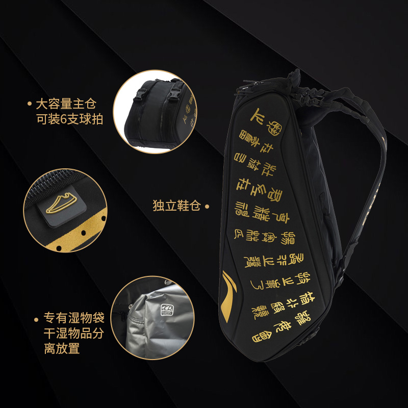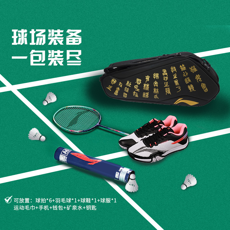 Li Ning badminton racket bag Chinese style 6 packs item storage bag with independent shoe warehouse ABJR016