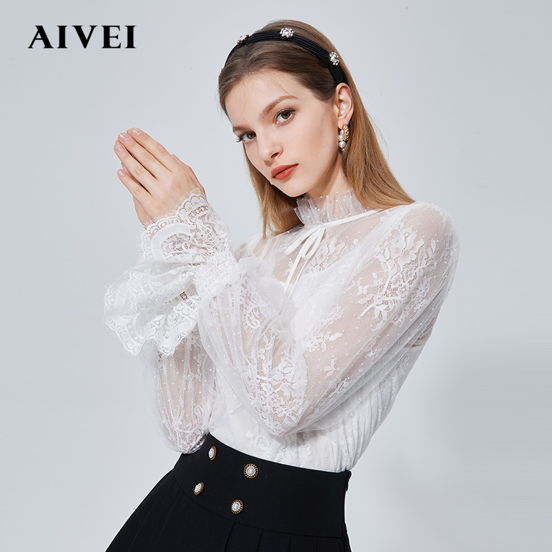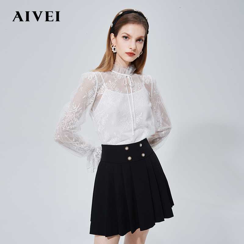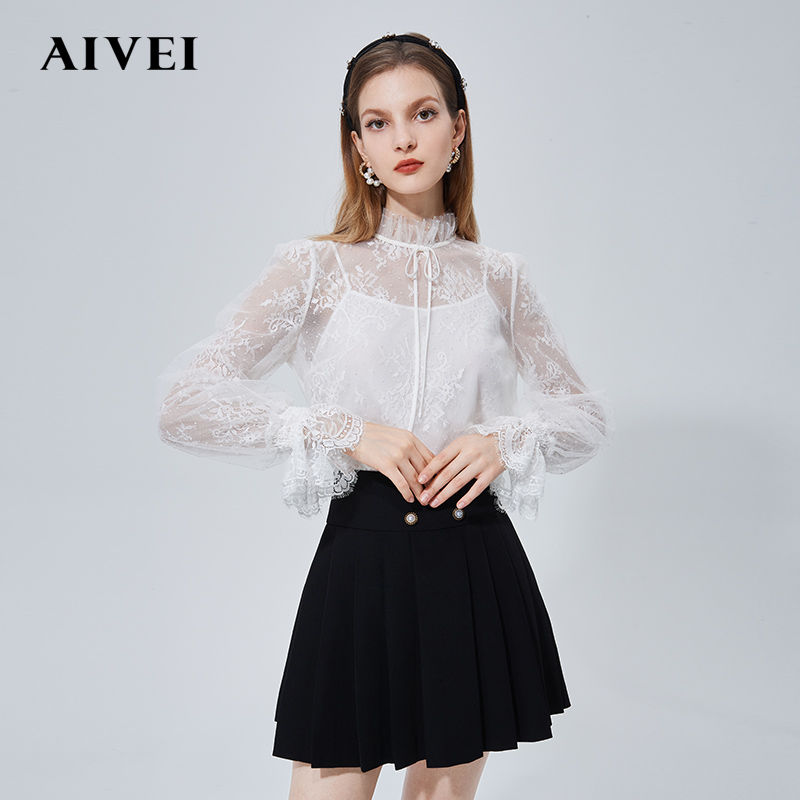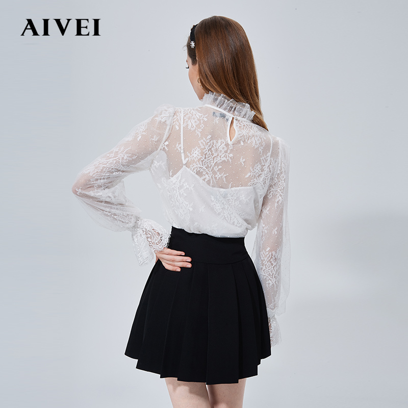 AIVEI Hinca Ai Weiwei 2022 Spring New Collar Lotus Leaf sleeve Pivot Wave Dot Lace two sets N066S065
