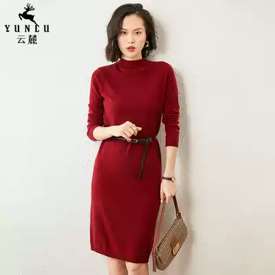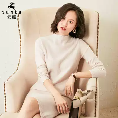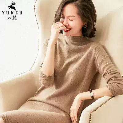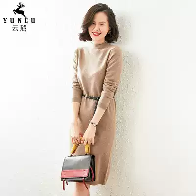 Half-high collar cashmere dress women's long version of autumn and winter pullover loose knee hip sweater skirt wool skirt children