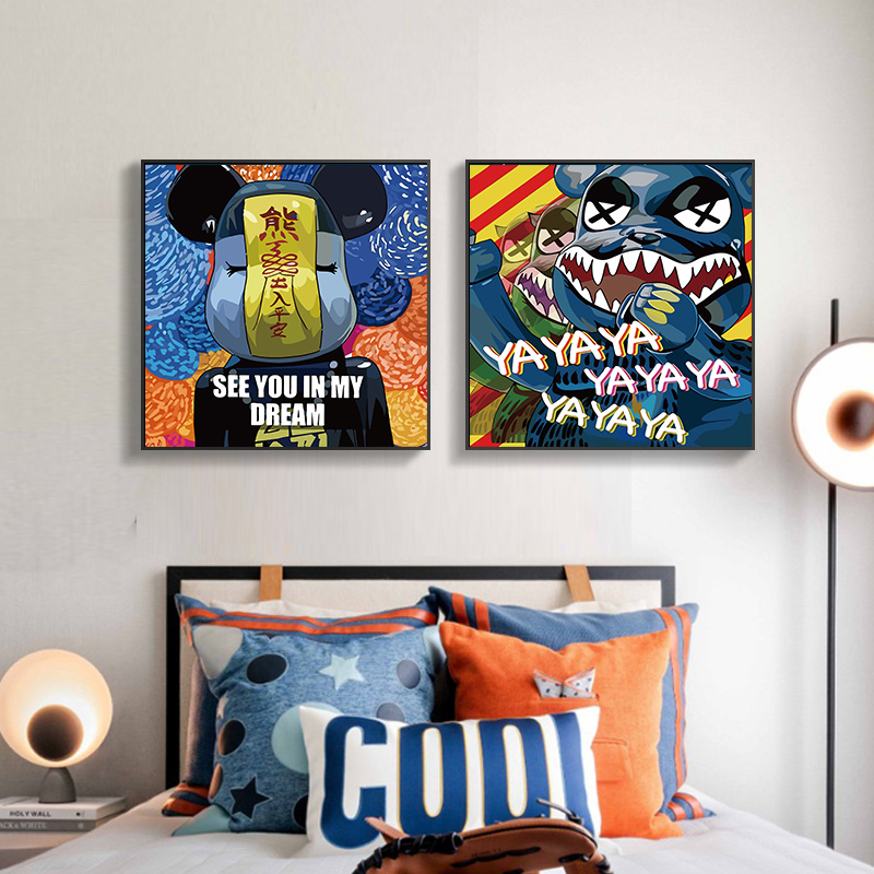 kaws cartoon decoration painting cute girl bedroom bedside cozy hanging painting boy room crayon small new mural