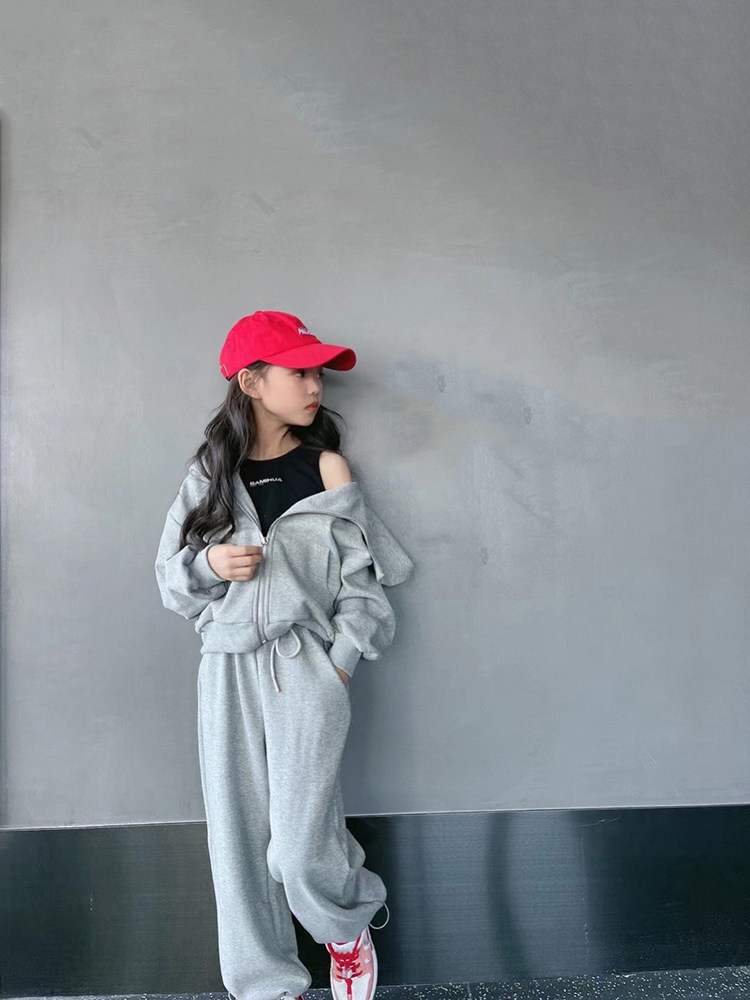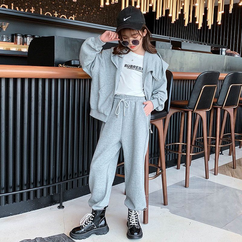 Girls net red suit autumn 2021 new Korean version of the Western style children's fashionable big boy spring and autumn hooded two-piece suit