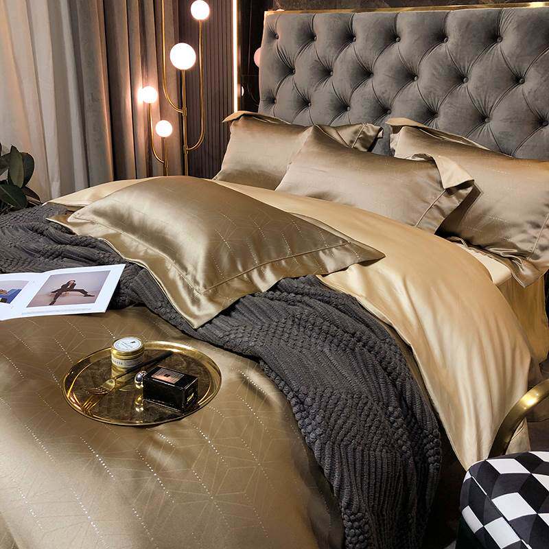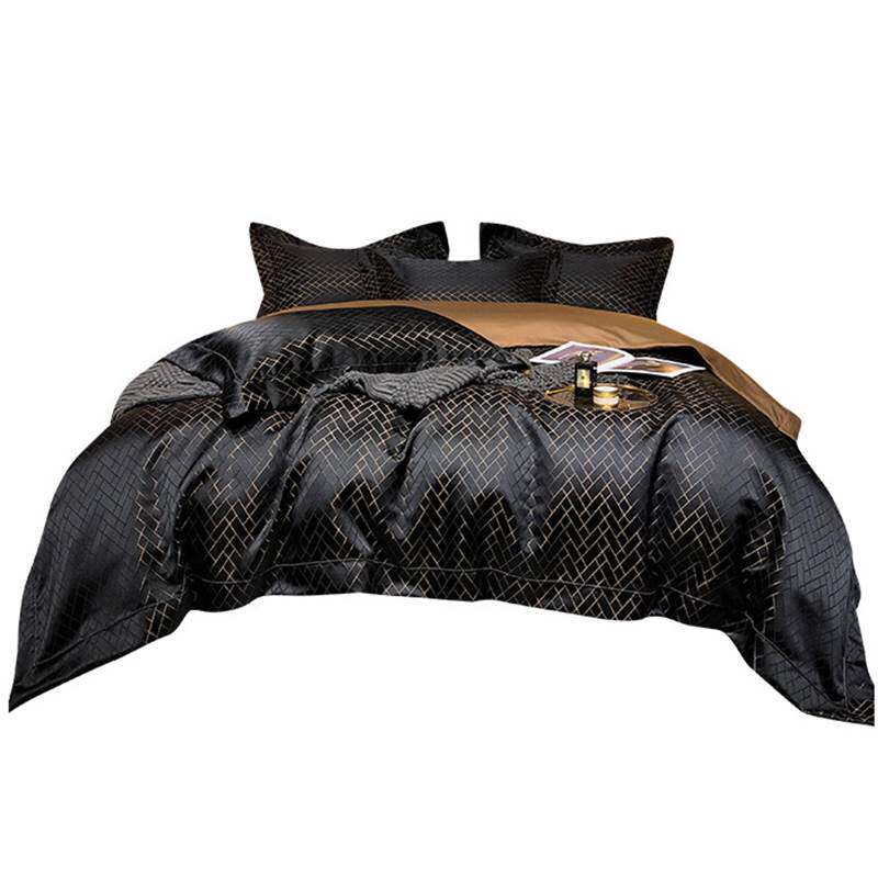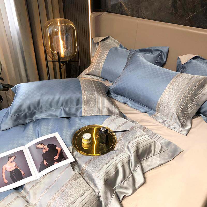 High-end new 100-count pure cotton four-piece cotton simple striped spring and autumn sheets quilt cover European-style bedding 4