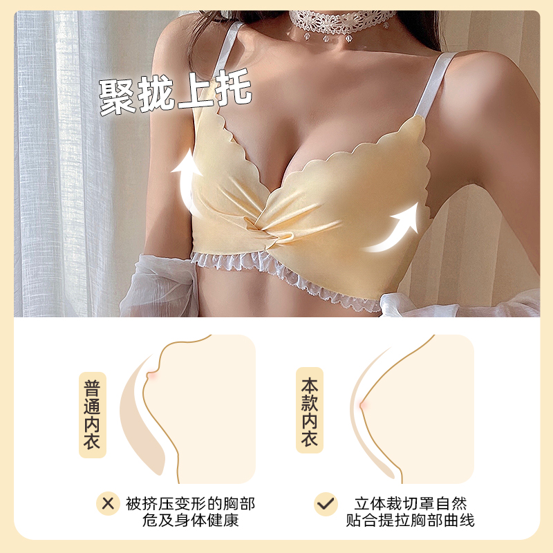 Lingerie female summer small breasts to woo thin models of not empty cups 2021 adolescent girls No steel ring No-ring-free underwear hoods Fall