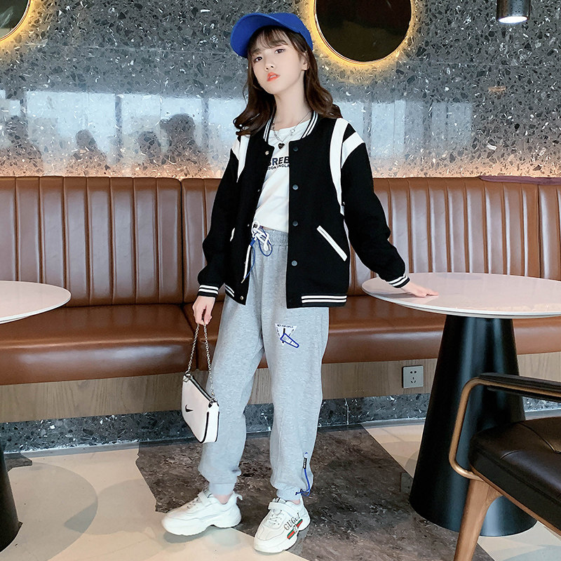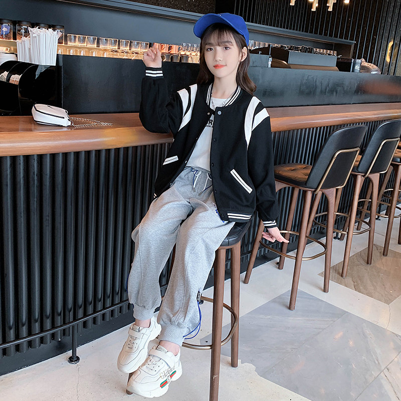 Girls jacket autumn 2021 new Western style net red children's baseball uniform spring and autumn fashionable middle-aged children's jacket top