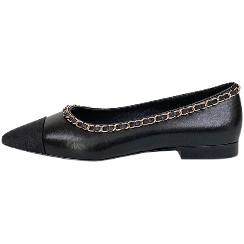 Xiaoxiangfeng color matching single shoes women's 2022 spring new all-match shallow mouth flat bottom pointed toe low heel leather flat shoes