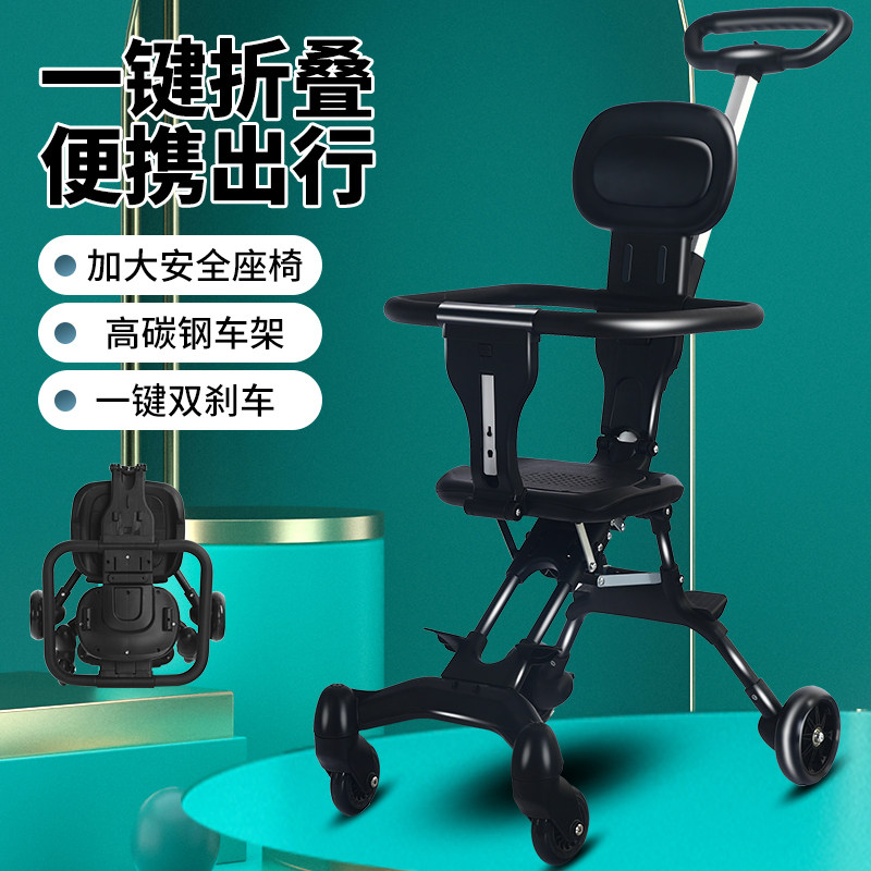 Children's trolley foldable ultra-light stool baby two-way baby walking one-button car collection portable trolley