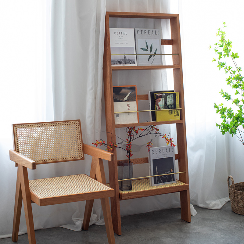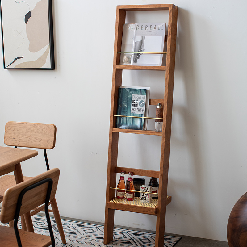 Nordic Cherry Wood Floor Bookshelf Small Family Type Living Room Display Cabinet Day Style Solid Wood Home Modern Minimalist Shelf