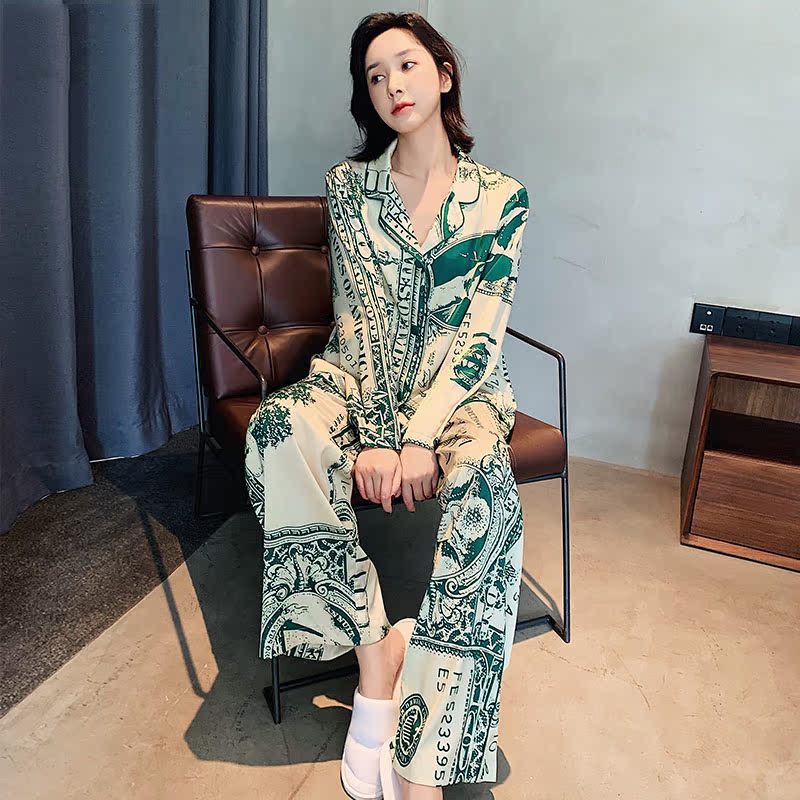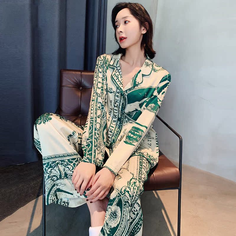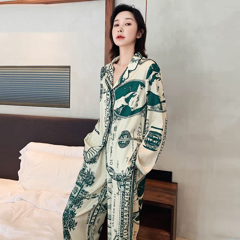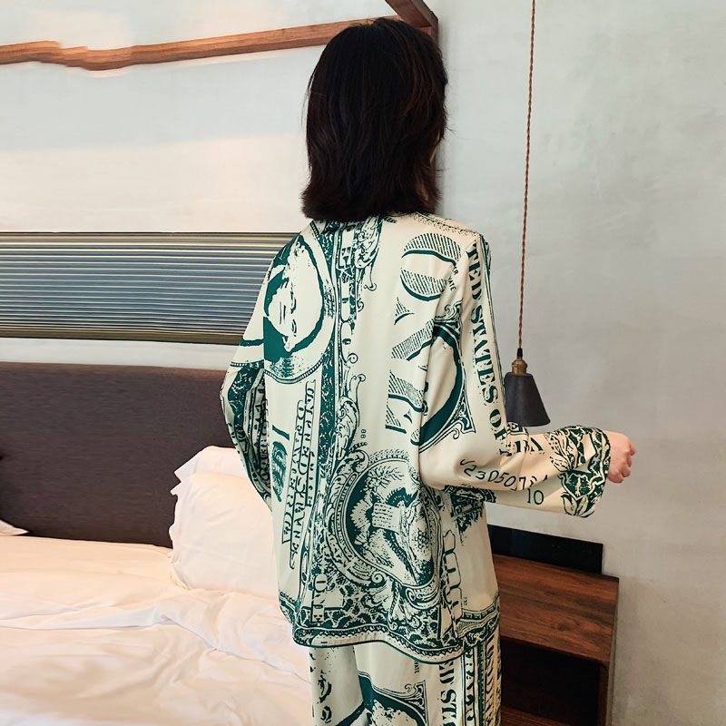 CHAO Atmosphere ~ classic Tibetan Genuine Silk Pyjamas Women's Summer Long Sleeve Geometric Pattern Loose can be worn out of thin section