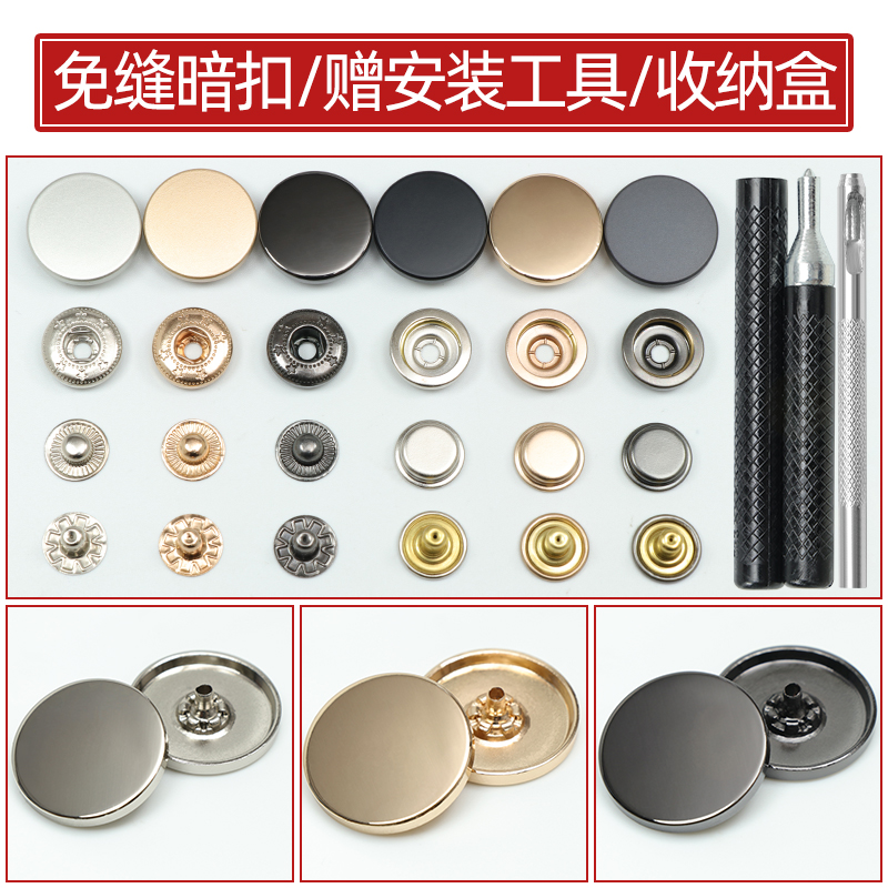 Flat subsection silver color 6 sets of press buckle (delivery containing case mounting tool) Flat-style gun color 6 sets of press buckle (delivery containing case mounting tool) Flat section gold 6 sets of press buttons (delivery containing box)