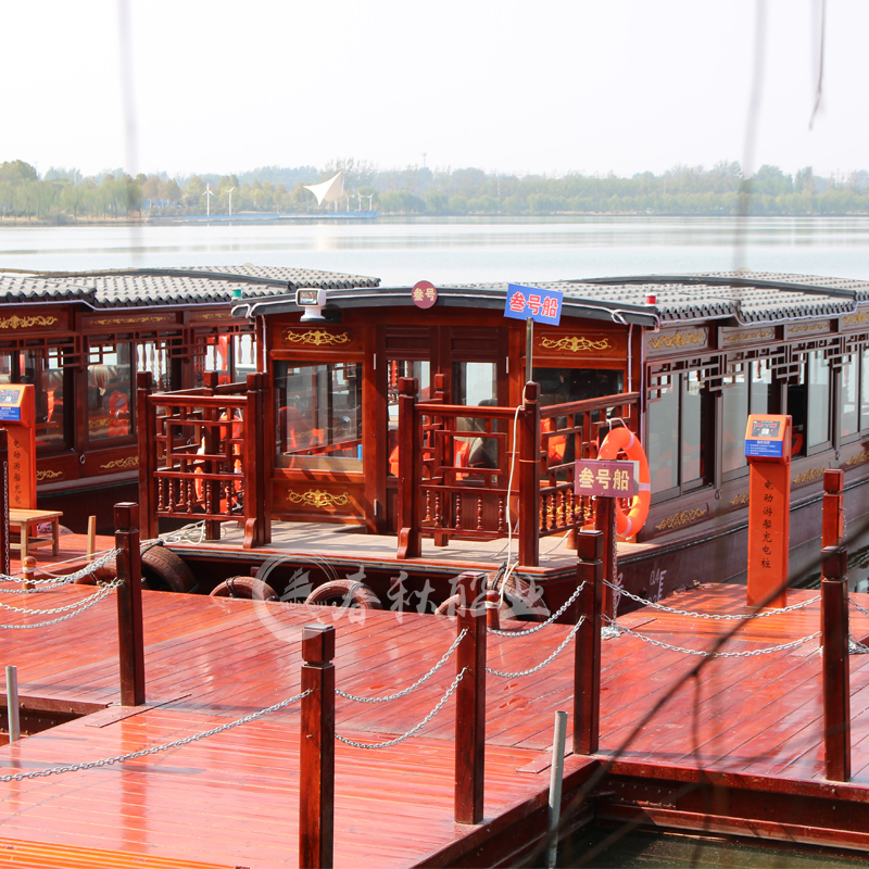 Wooden boat painting large water catering room scenic antique glass steel wooden steel wooden houseElectric sightseeing boat