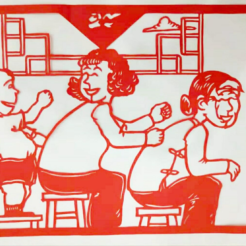 Home style Red paper-cut window flower decoration painting hand-cut student children's unit Home training filial piety glass sticker