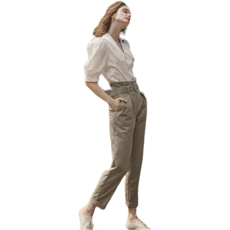 French Rouje Damas summer new retro puff sleeve design sense of niche temperament lapel short-sleeved shirt
