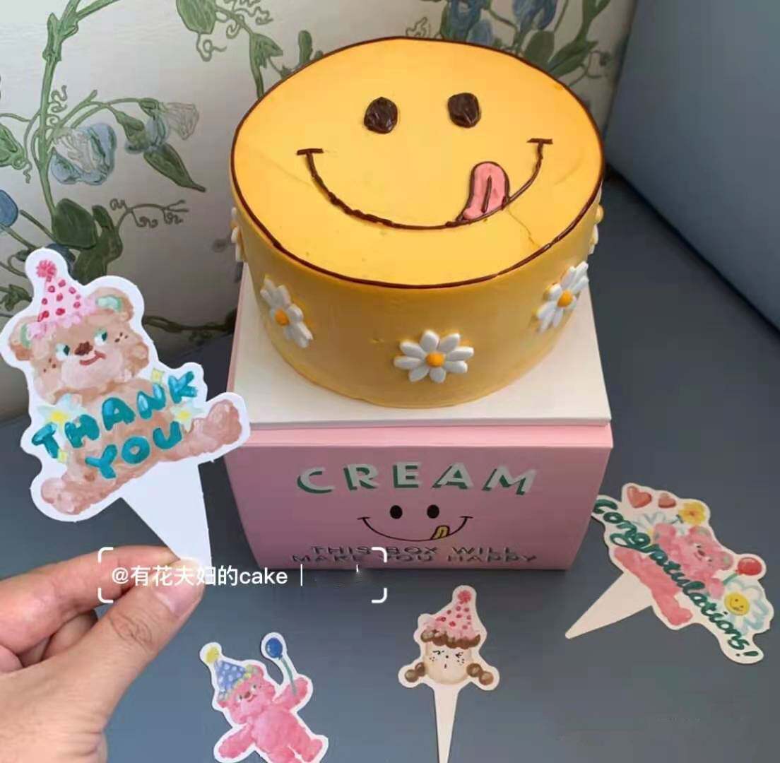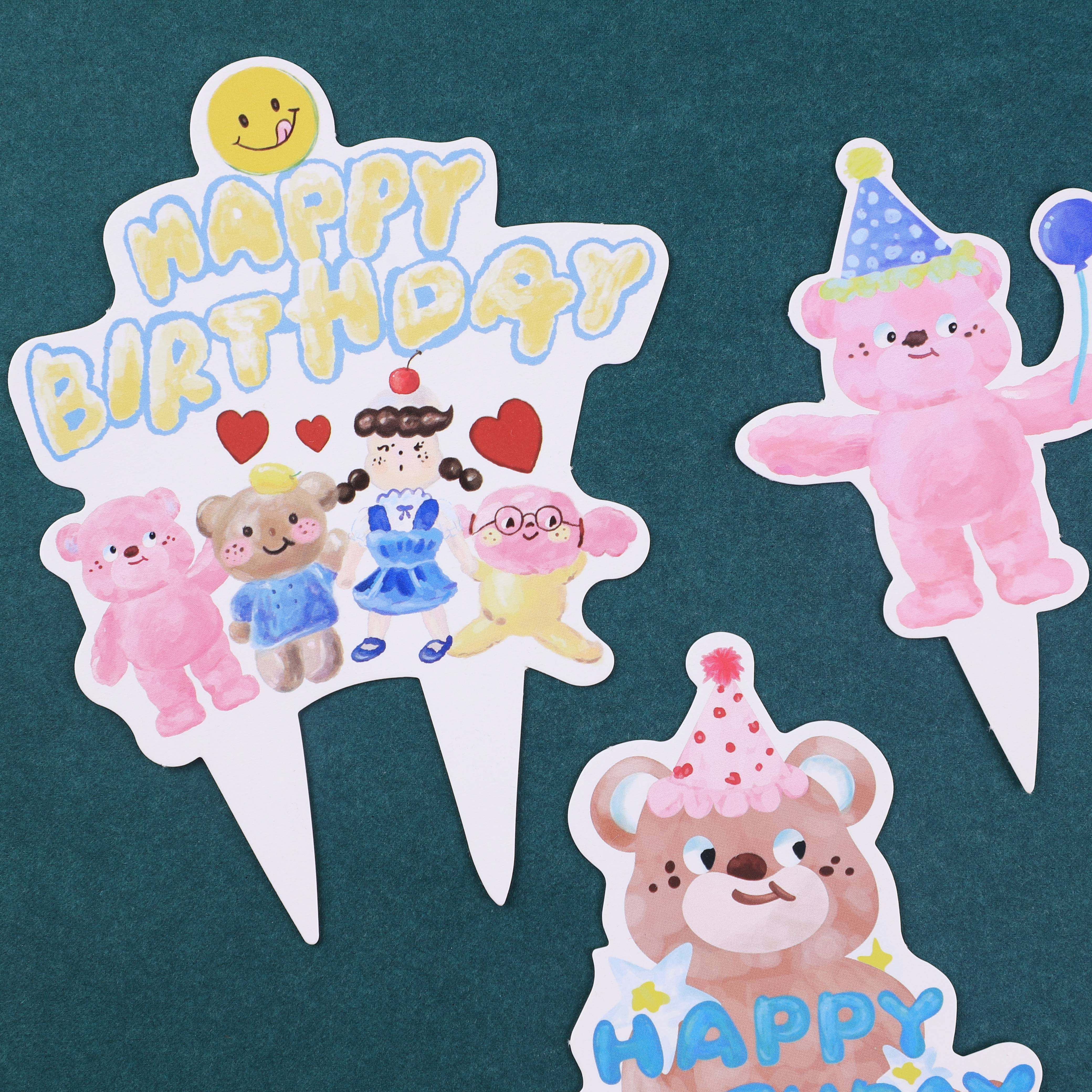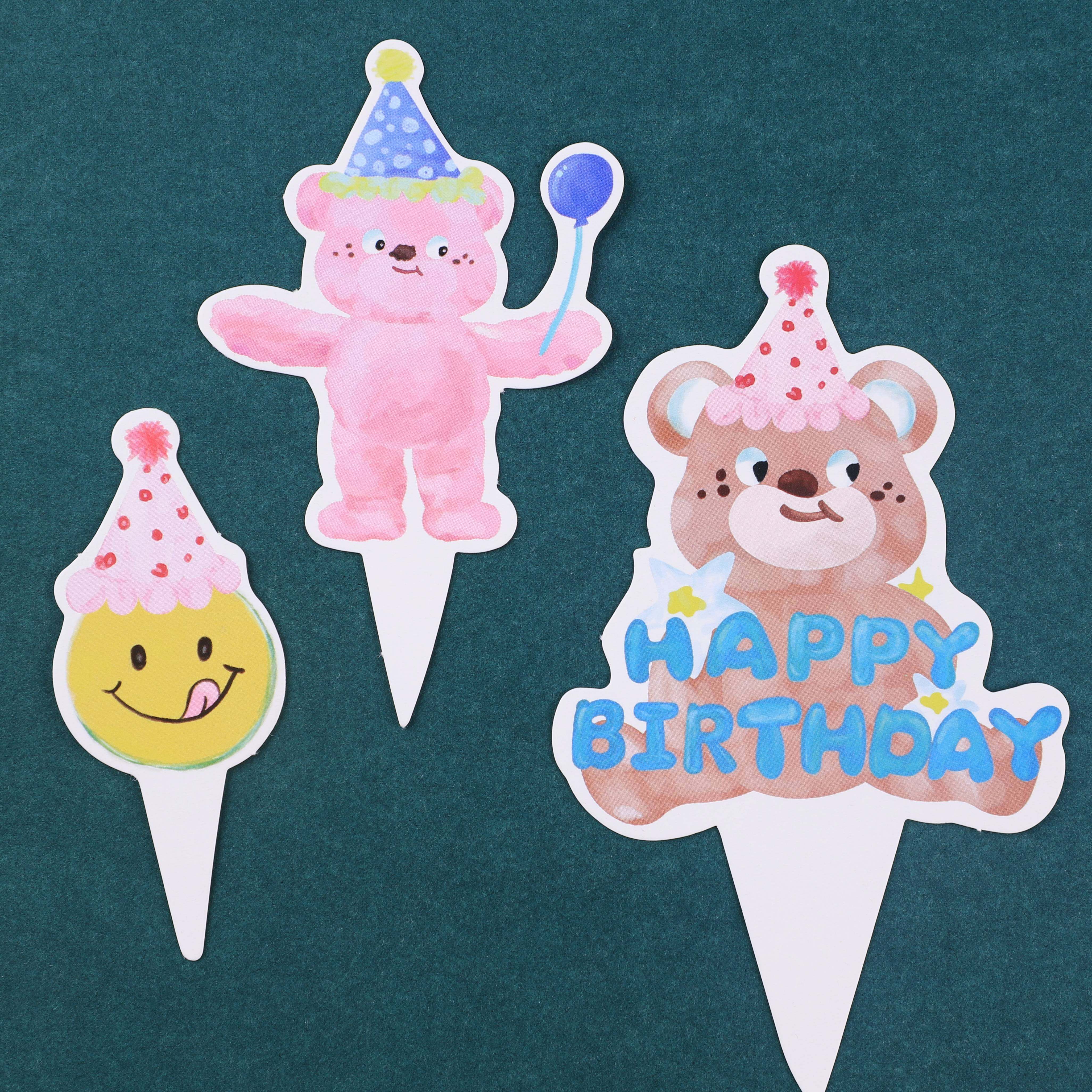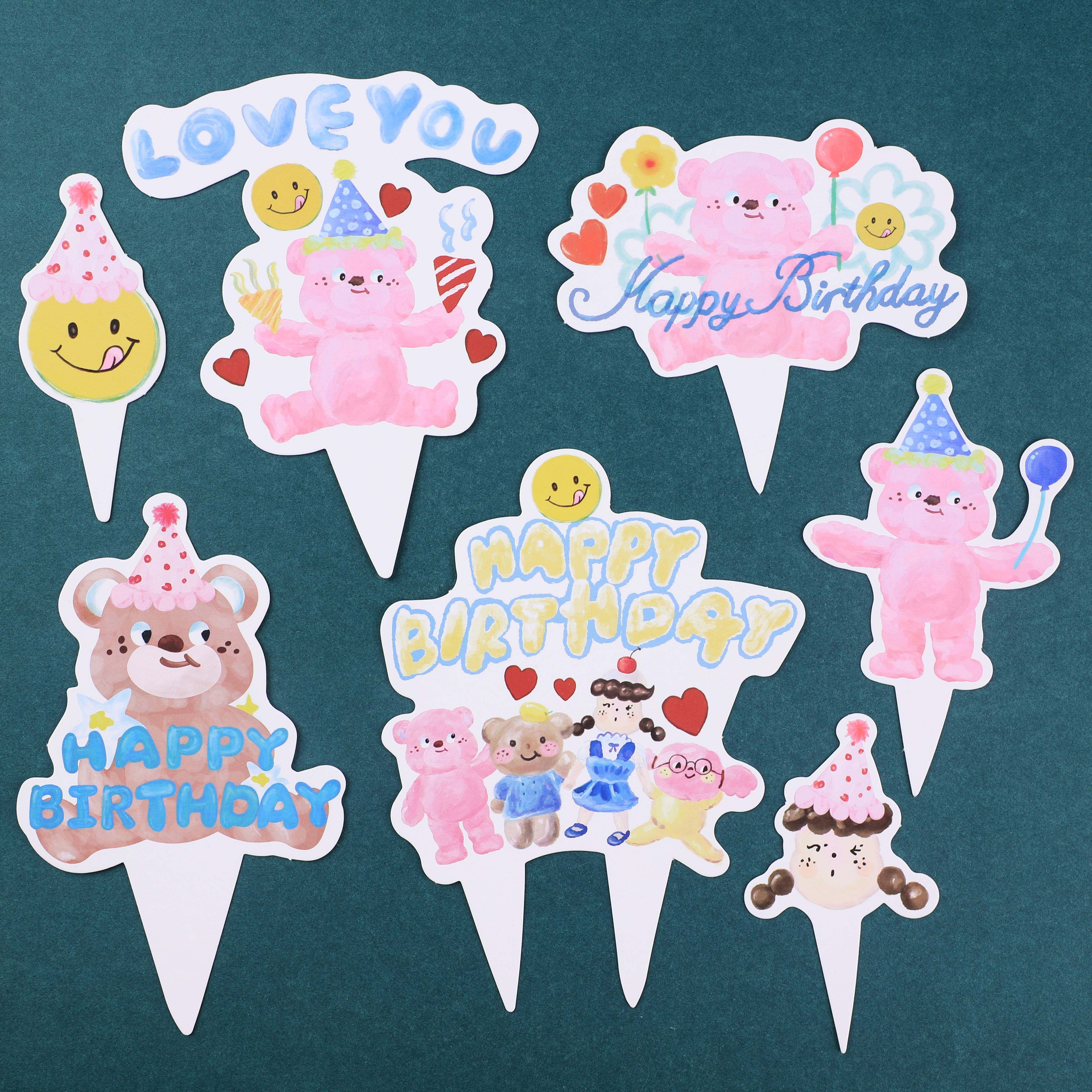 INS HAPPYBIRTHDAY happy birthday hand painted bear cake dessert baking gift decoration insert