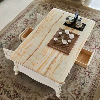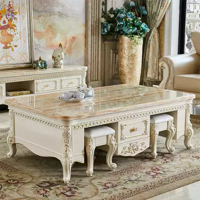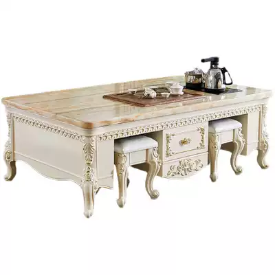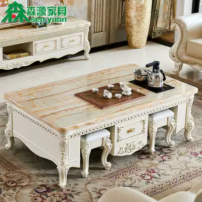 European-style marble solid wood multifunctional kung fu coffee table white tea table TV cabinet combination simple small apartment