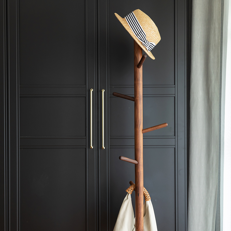 Black Walnuts Solid Wood Hanger Bedroom Floor Hanging Hanger Doorway Cloak Rack Plus Coarse Thickening Upright Whole Rod Advanced Sensation