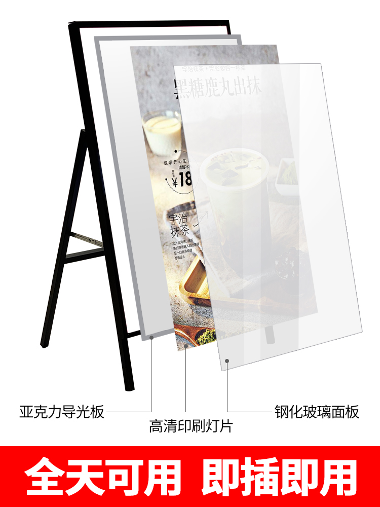 Milk Tea Shop LED Light Box Advertising Display Card Folding Outdoor Shining Publicity Show Shelf Upright Waterproof Floor