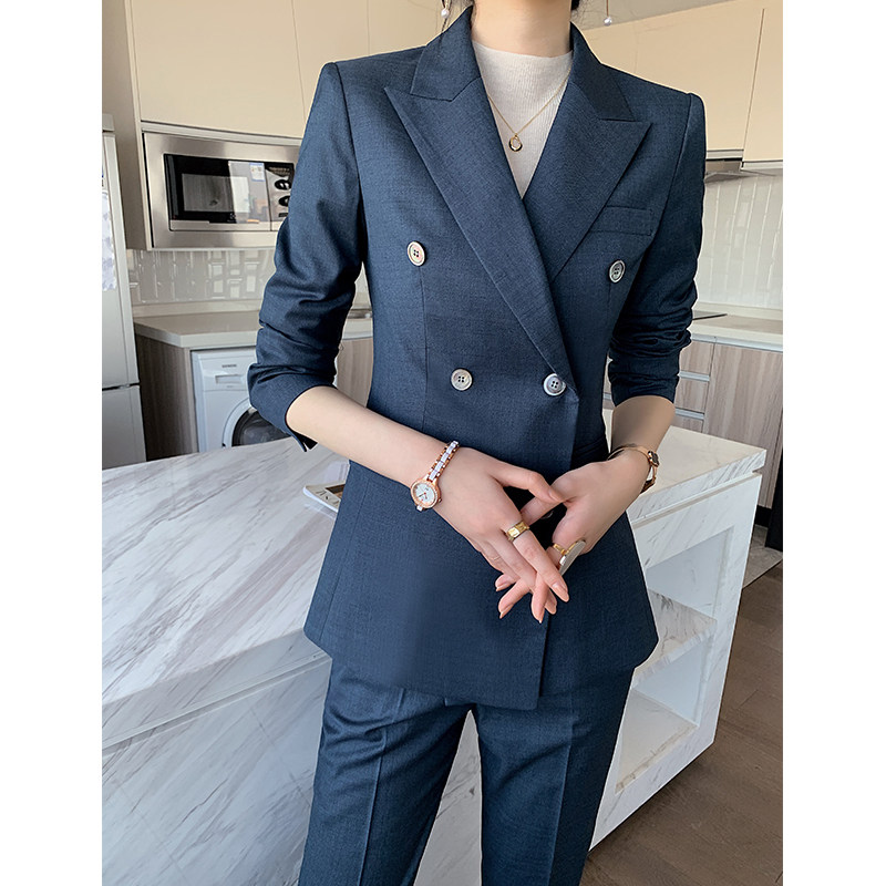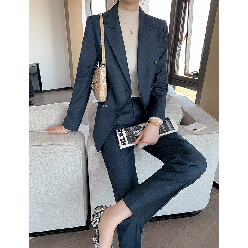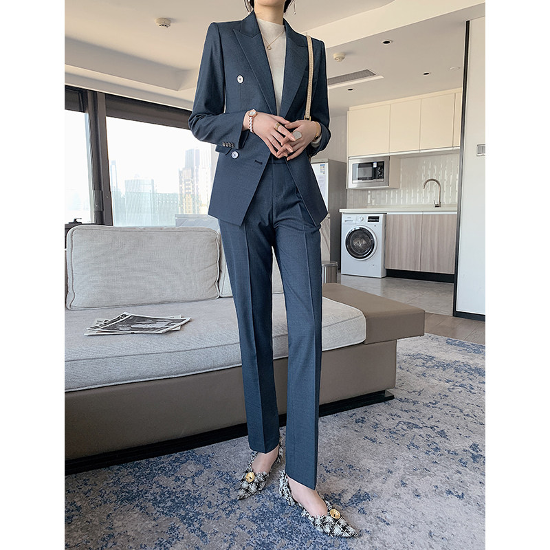 2021 New Advanced Design Blue Suite Set Female Spring and Autumn High - end Temperance Two - piece suit suit