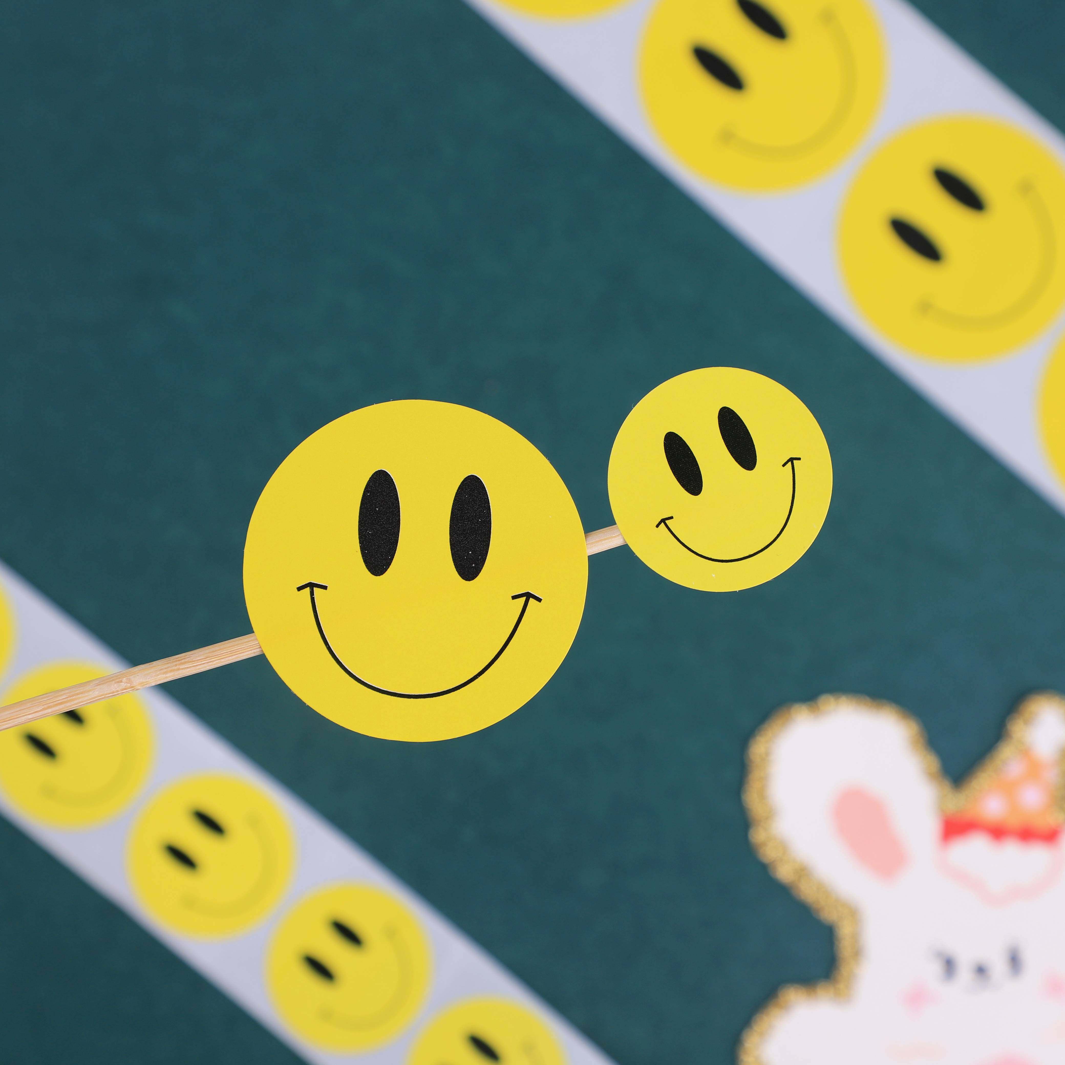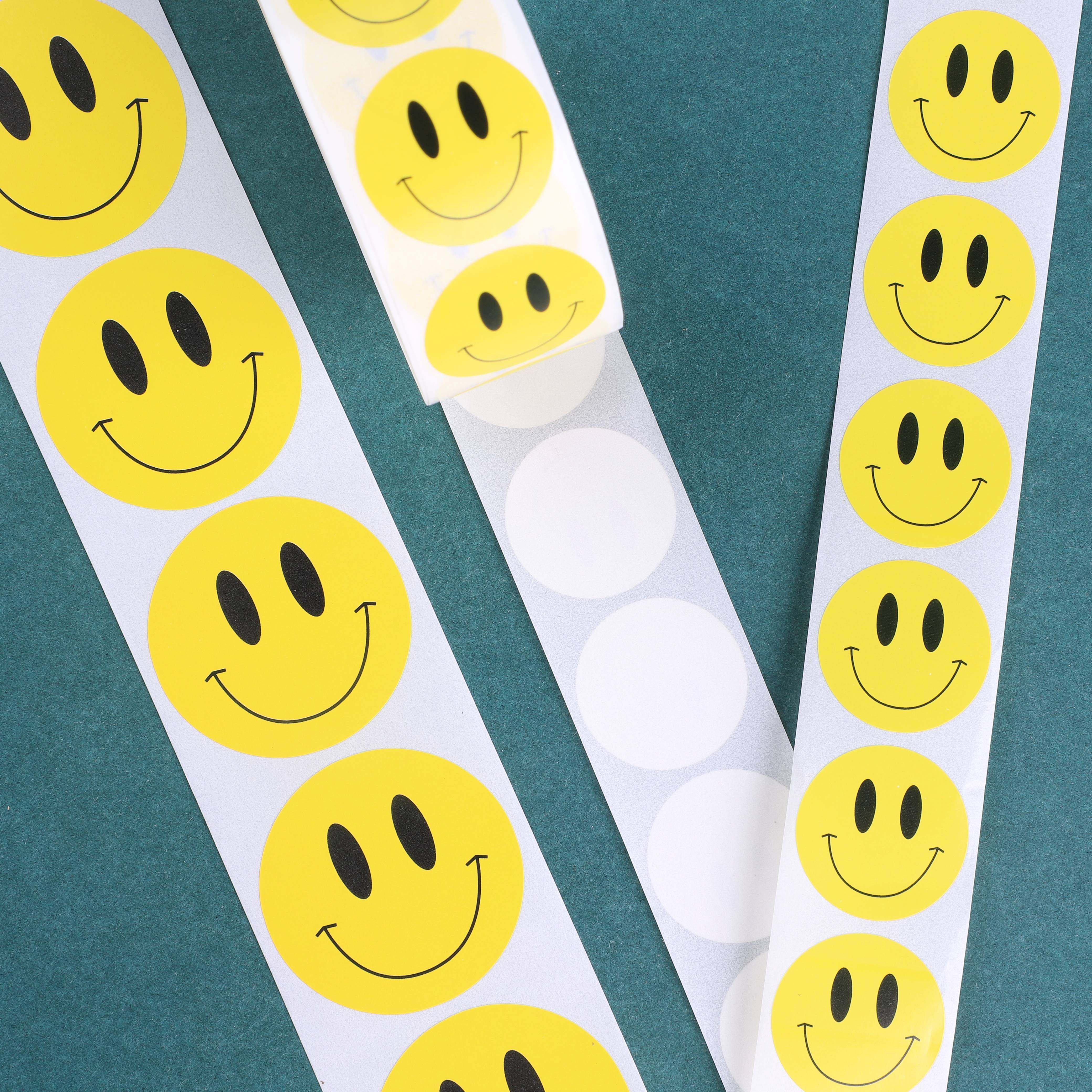 Small smiley face diameter 2 5cm(1 roll 500 pieces) large smiley face diameter 3 8cm(1 roll 500 pieces)