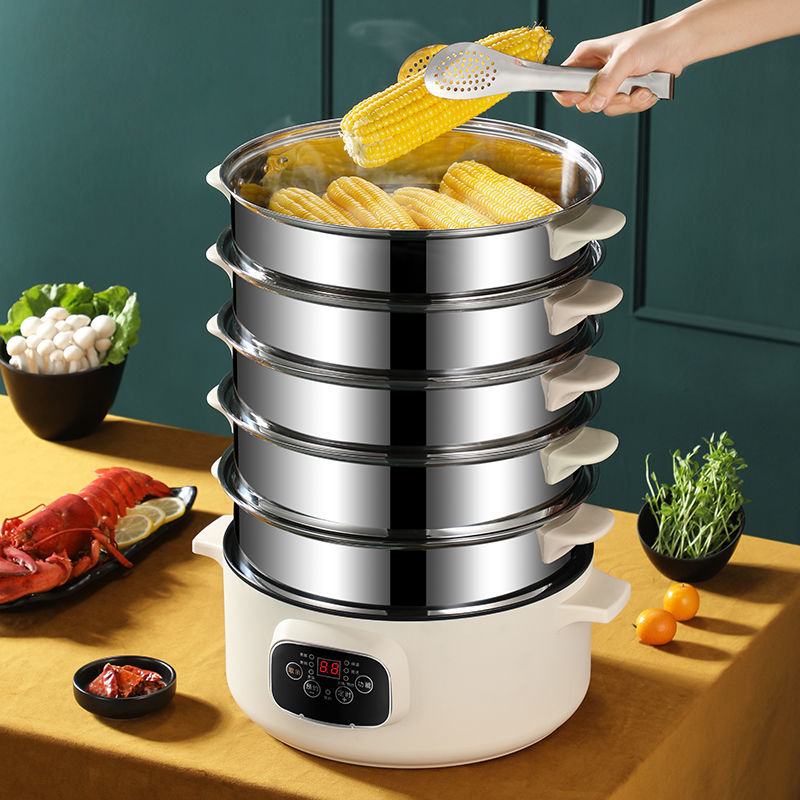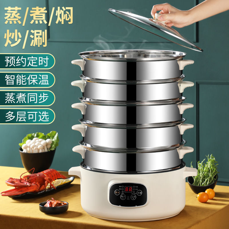 Electric steamer household multi-functional large-capacity multi-layer stainless steel commercial electric steamer steamed buns steamed vegetables plug-in hot pot
