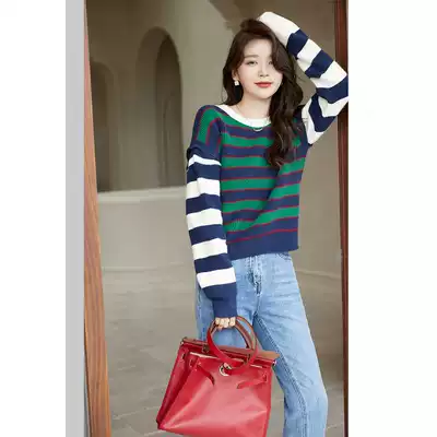 MALCENL KLON original sweater early autumn coat lazy autumn stripes niche stitching autumn knit top