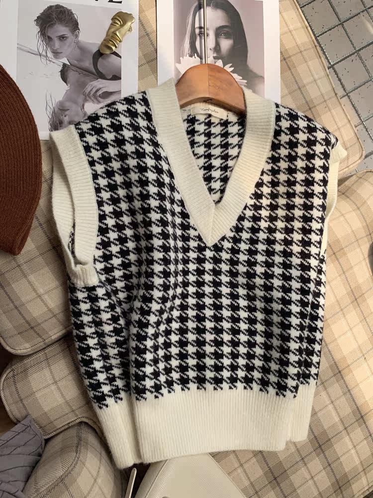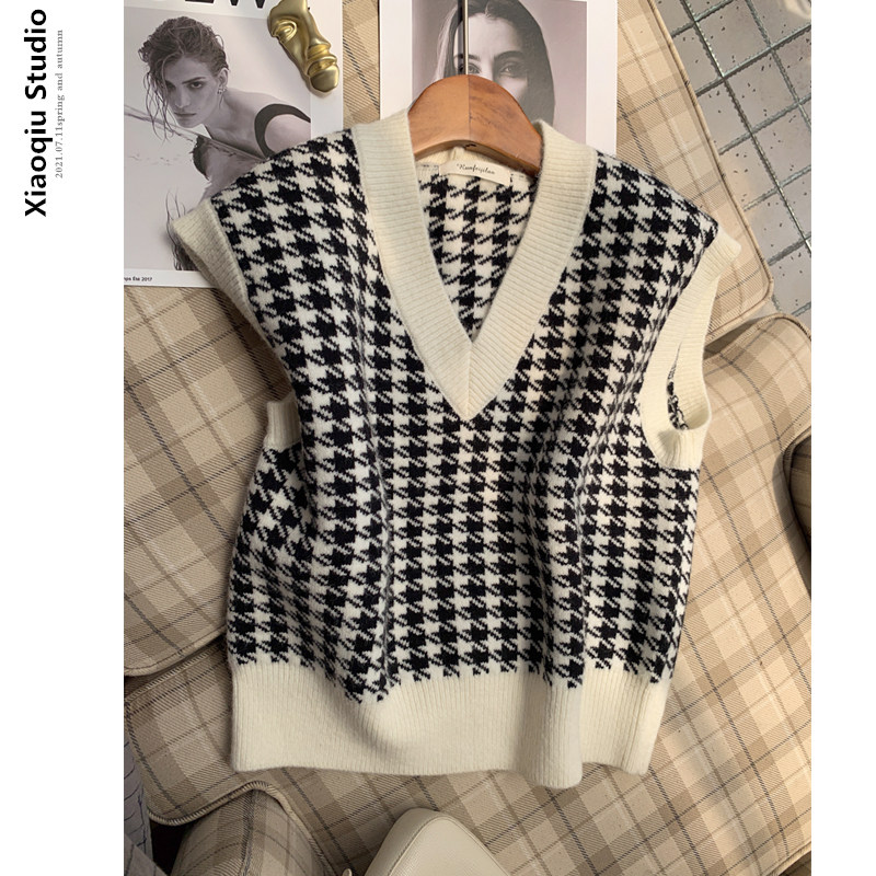 2021 Fall new loose sweater Qianbirge fur line vest waistcoat waistcoat 100 lap knitted waistcoat woman