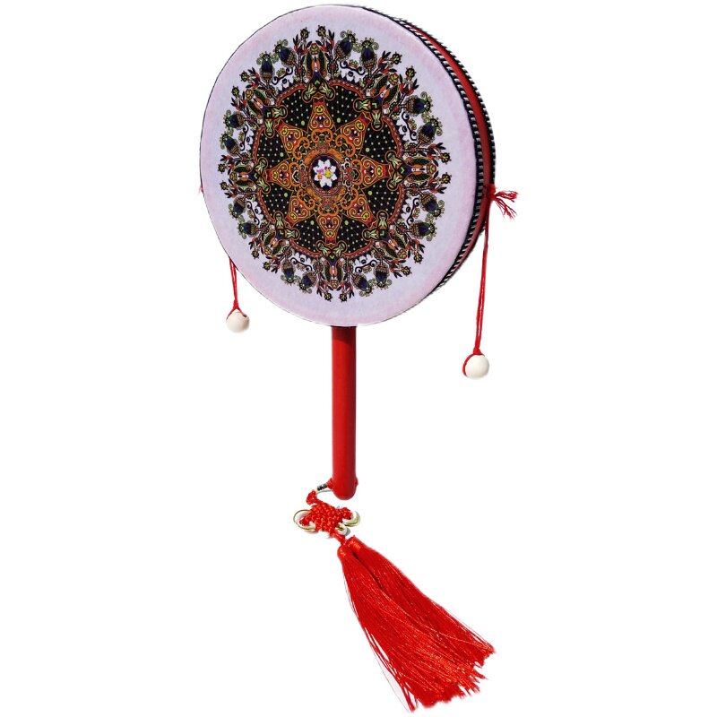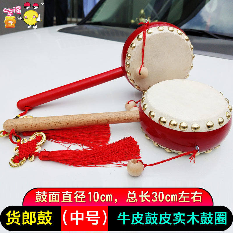 Medium-sized hawker drum children's rattle cowhide hand drum wooden wave drum shouting drum selling drum handle drum