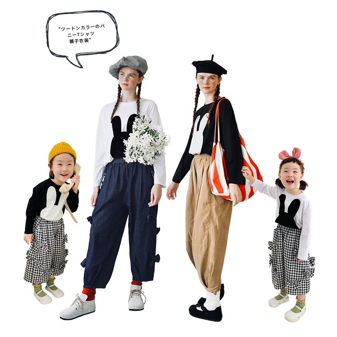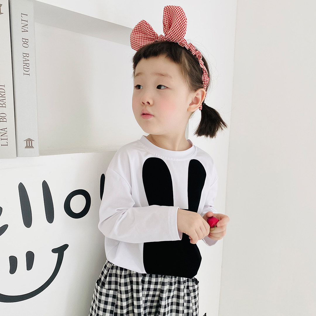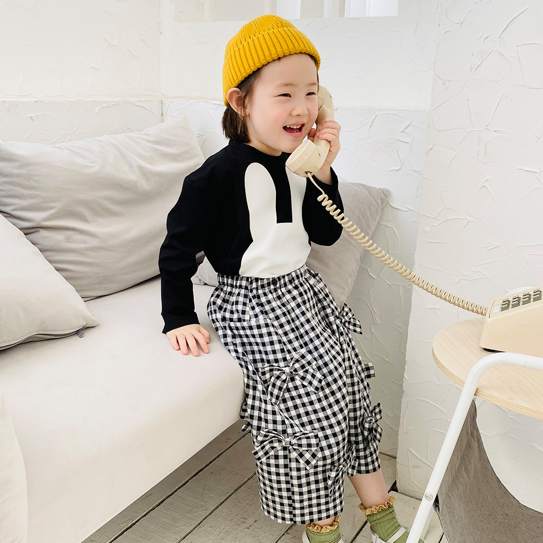 t-shirt parent-child imakokoni suit black and white long sleeve casual plaid back with pants girl autumn 21688 baby-Taobao