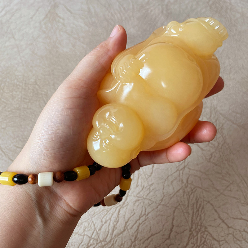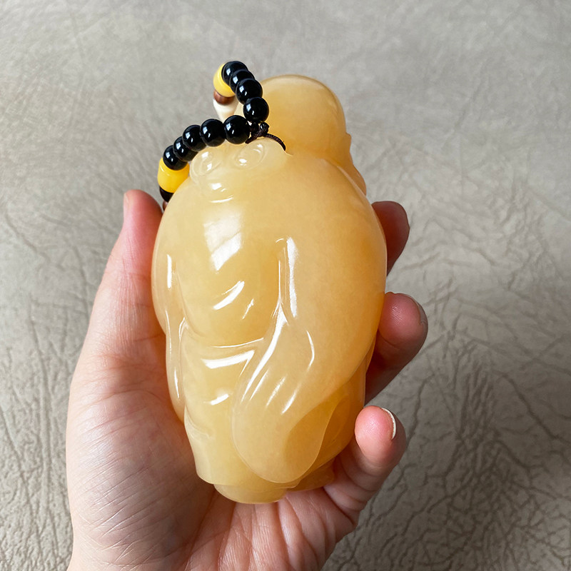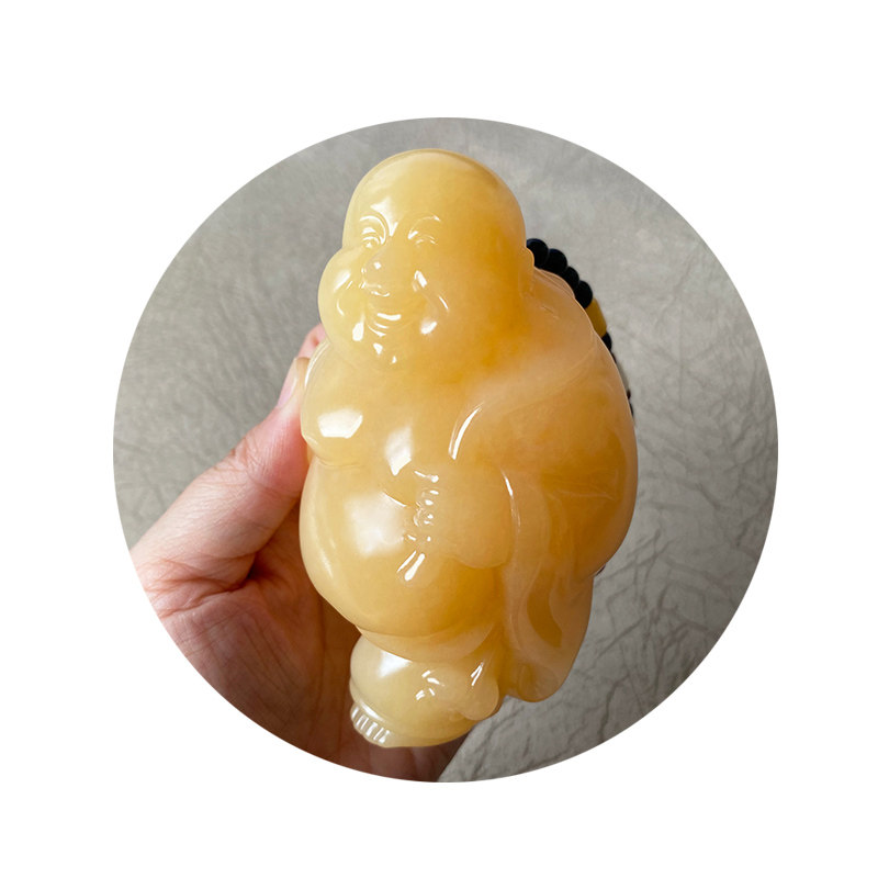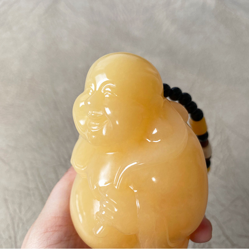 Huanglong Jade big belly Maitreya Buddha hand play piece three-dimensional carving men's smile Buddha Jade play Jade naked stone