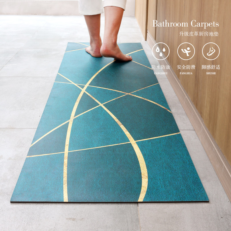 Kitchen floor mat Nordic long strip waterproof and oil-proof can be wiped disposable foot pad PVC home door mat non-slip carpet