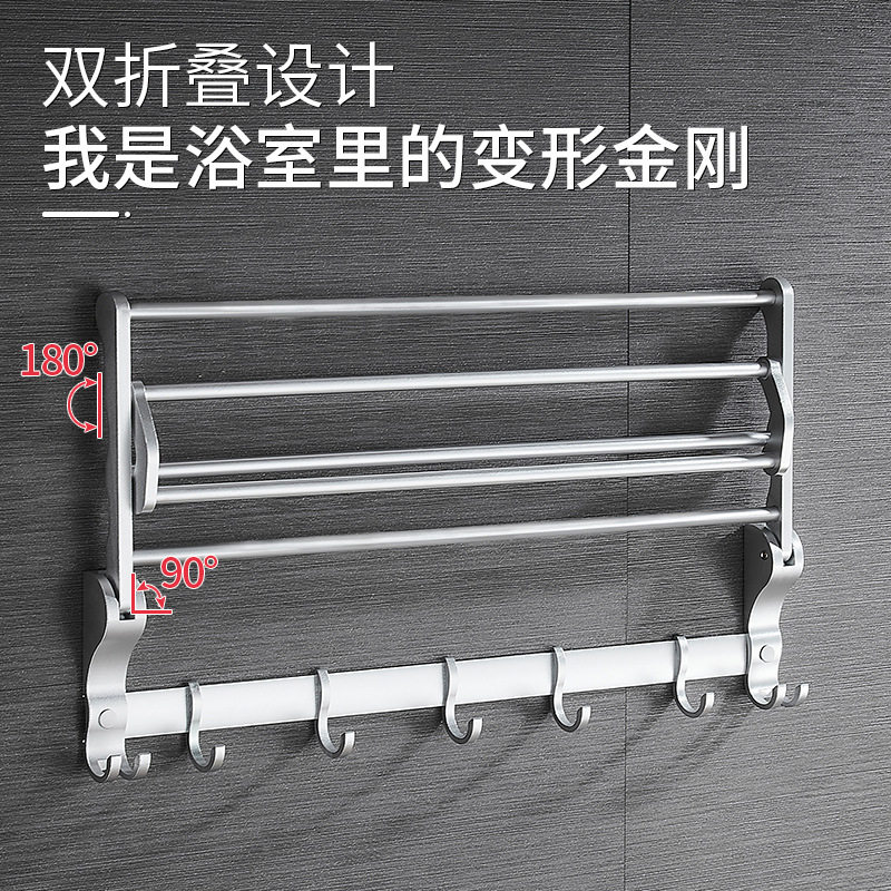 Bathroom towel rack bathroom rack wall-mounted towel rack toilet foldable storage rack space aluminum hanger