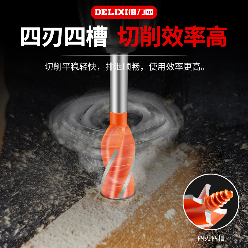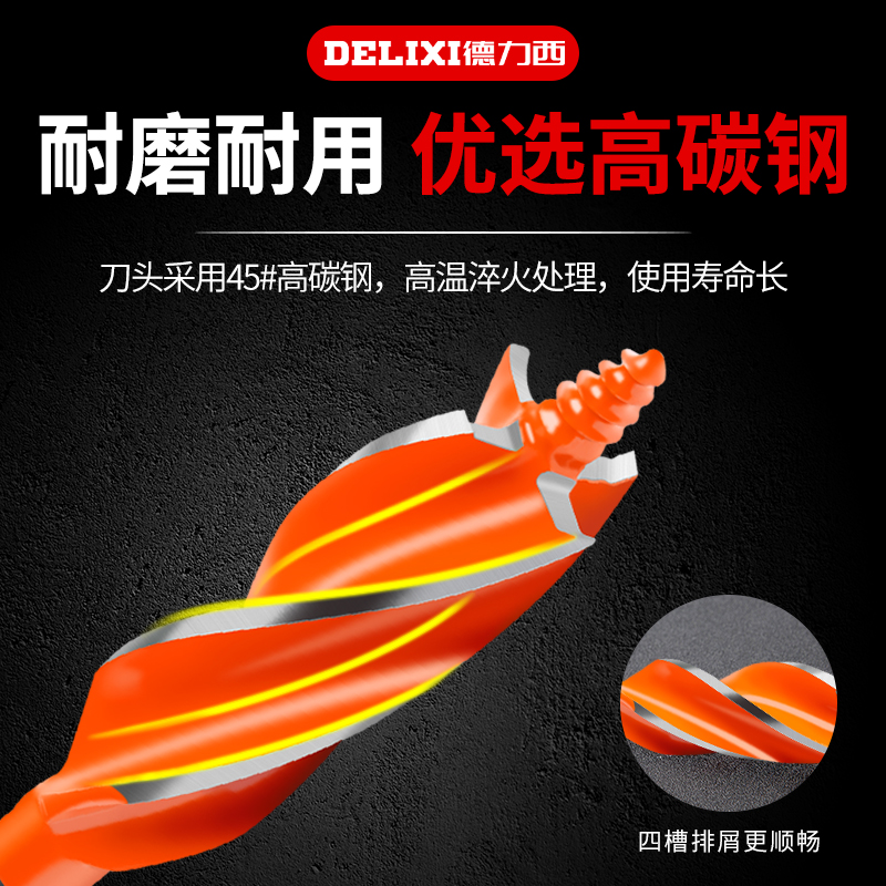 Delixi woodworking support drill woodworking deep hole drill drill four-edged four-slot woodworking drill bit high carbon steel support drill