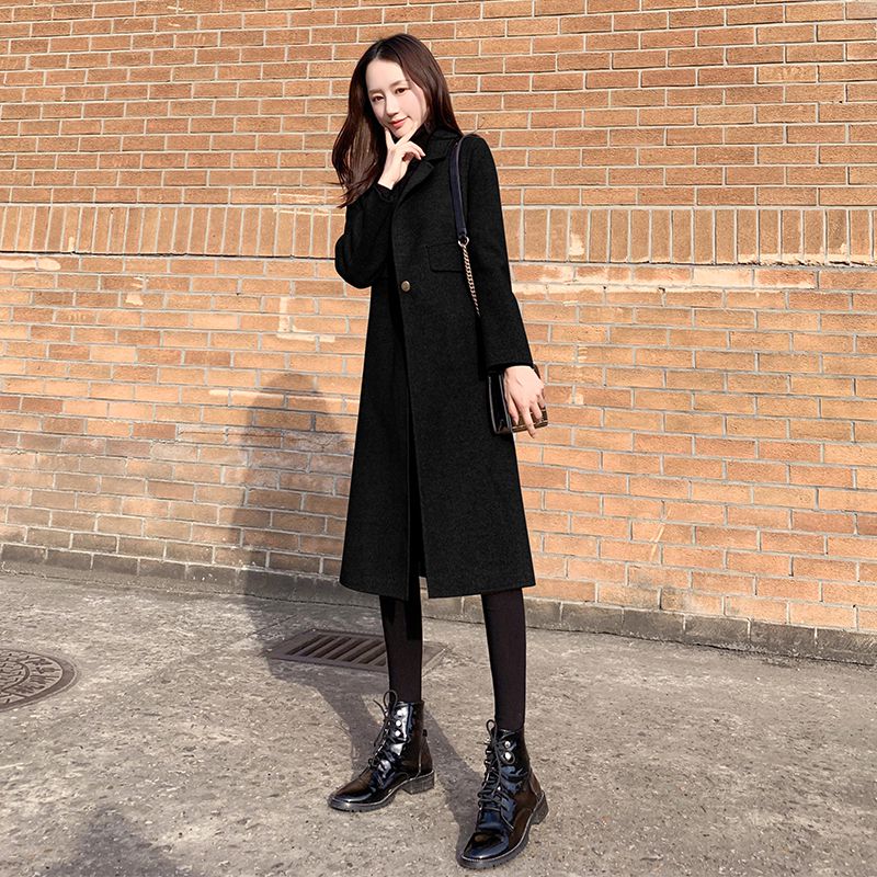 Coat women's 2022 autumn and winter new Korean style loose woolen coat women's mid-length popular Hepburn style woolen coat