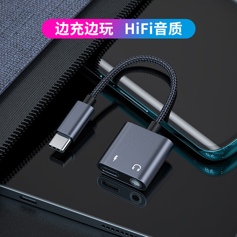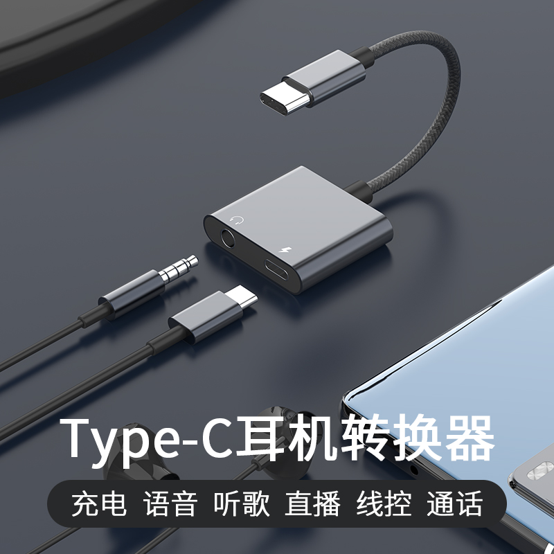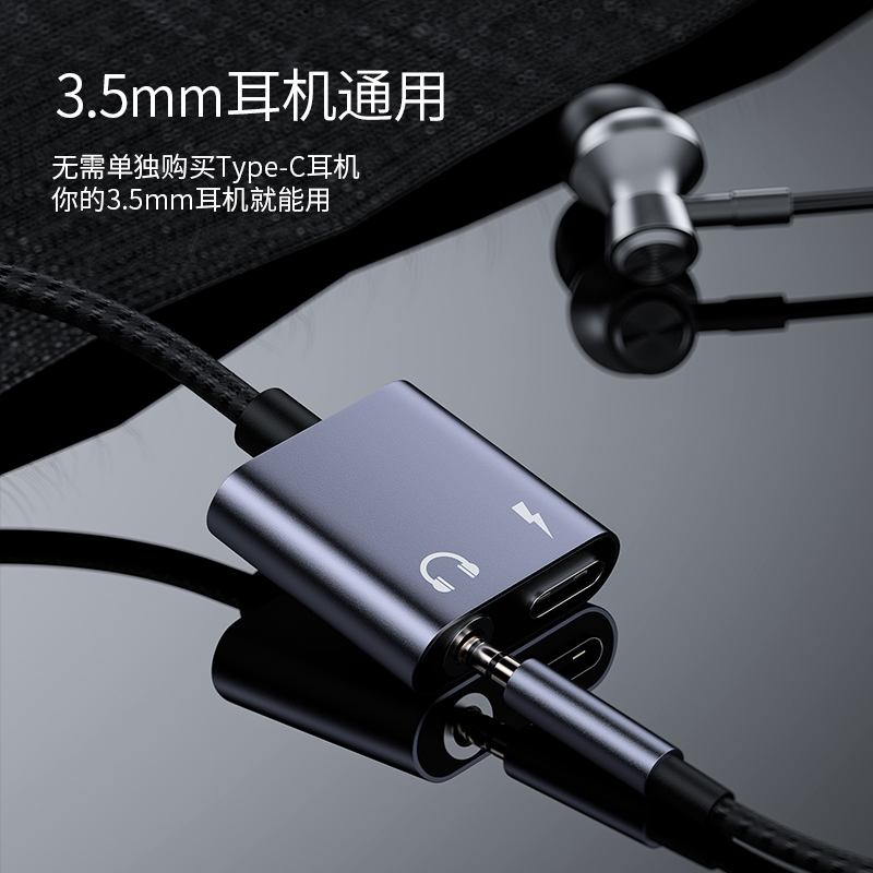 Grey☆square box paragraph☆(type-C 3 5mm connector) charge listening song two-in-one black☆square box paragraph☆(type-c 3 5mm connector) charge listening to song Two