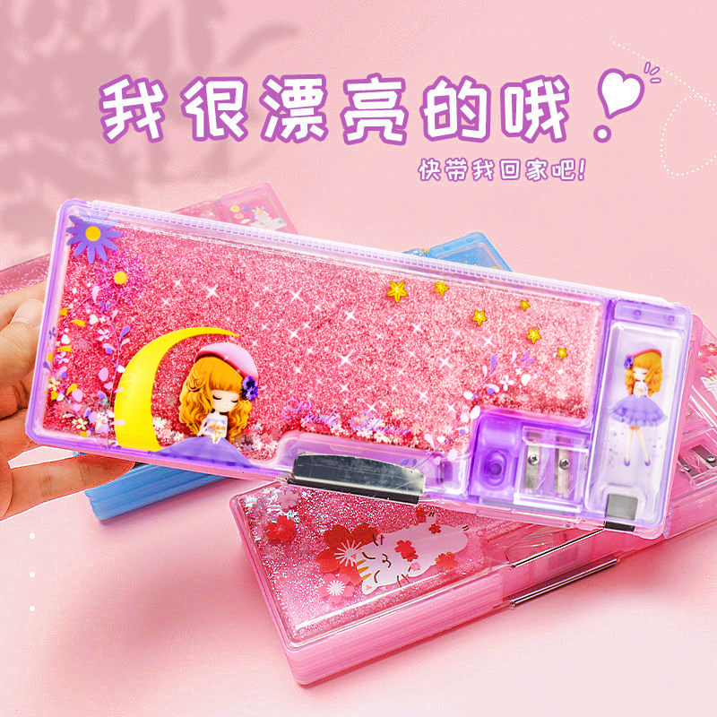 Lead Pencil Case Girl Children's Pencil Case Girls Children's Pencil Case Elementary School Children Cute Kindergarten Girls Ins Wind Days 12 Third grade Transparent Large-capacity adolescent girls Heart 2022 New transparency
