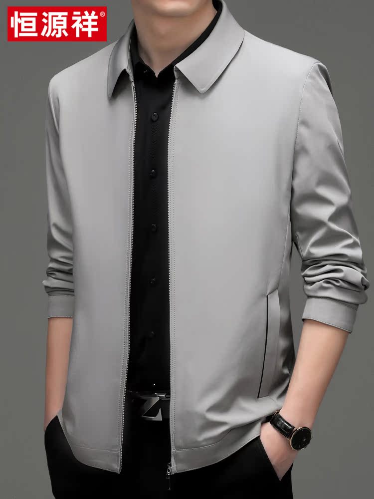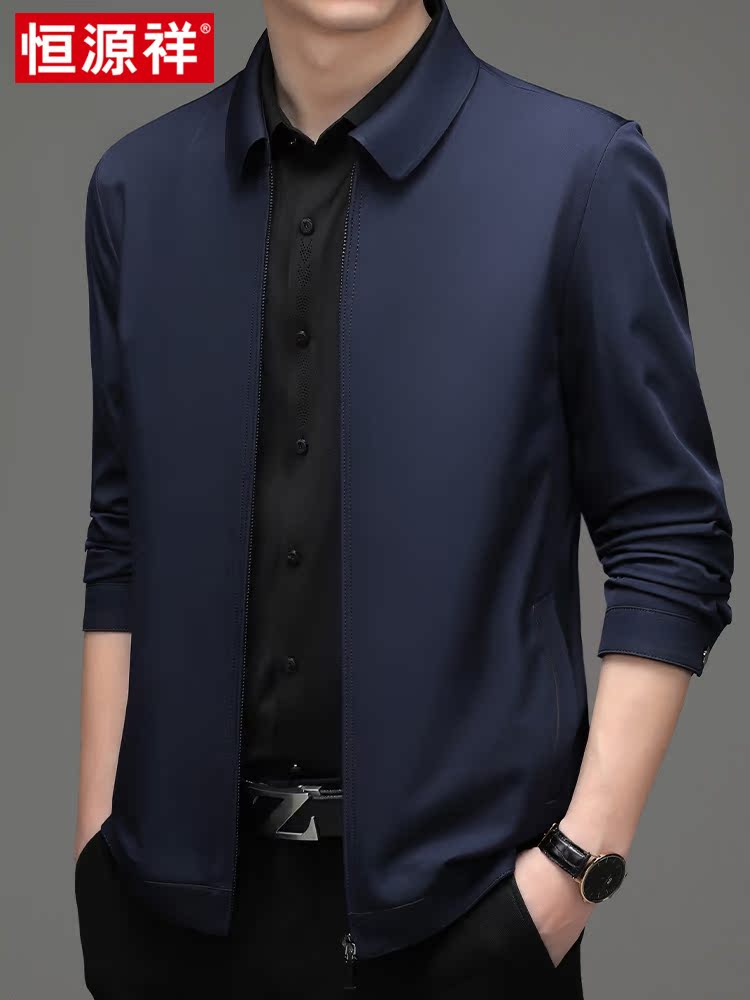 Hengyuanxiang middle-aged dad jacket men's 2021 autumn new lapel solid color lapel business middle-aged and elderly jacket men
