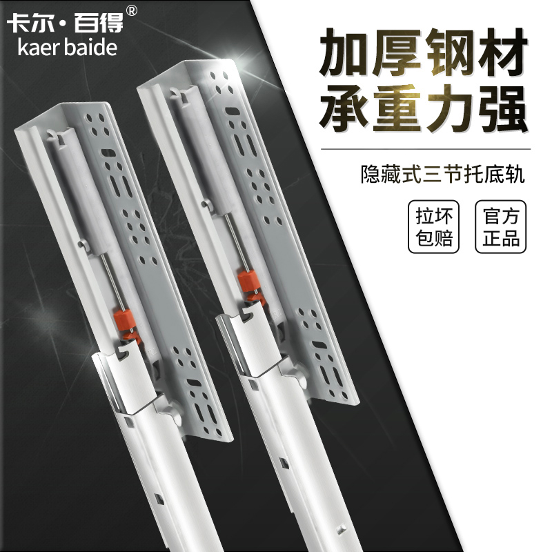Rebound bottom drawer guide rail cabinet three-section full pull track bottom installation silent hidden slide rail damping buffer slideway