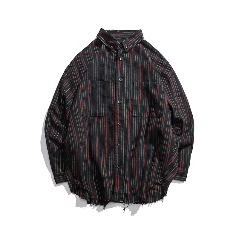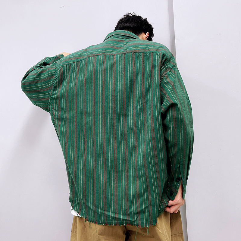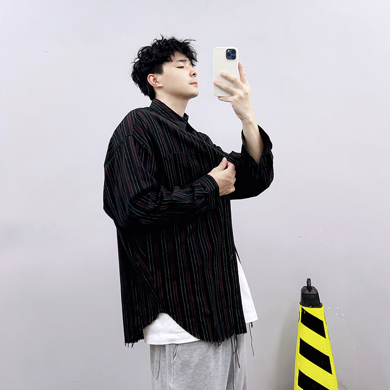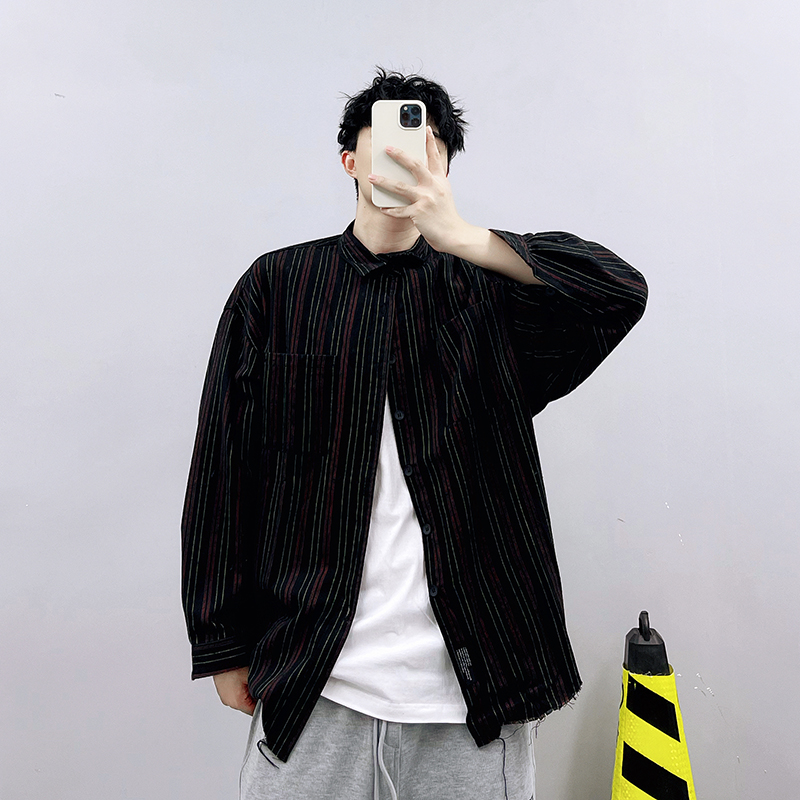 PGUP STUDIO SPRING STREET TRENDS HANDSOME Loose Retro Stripes Fall Shoulder long sleeve shirt Men INS